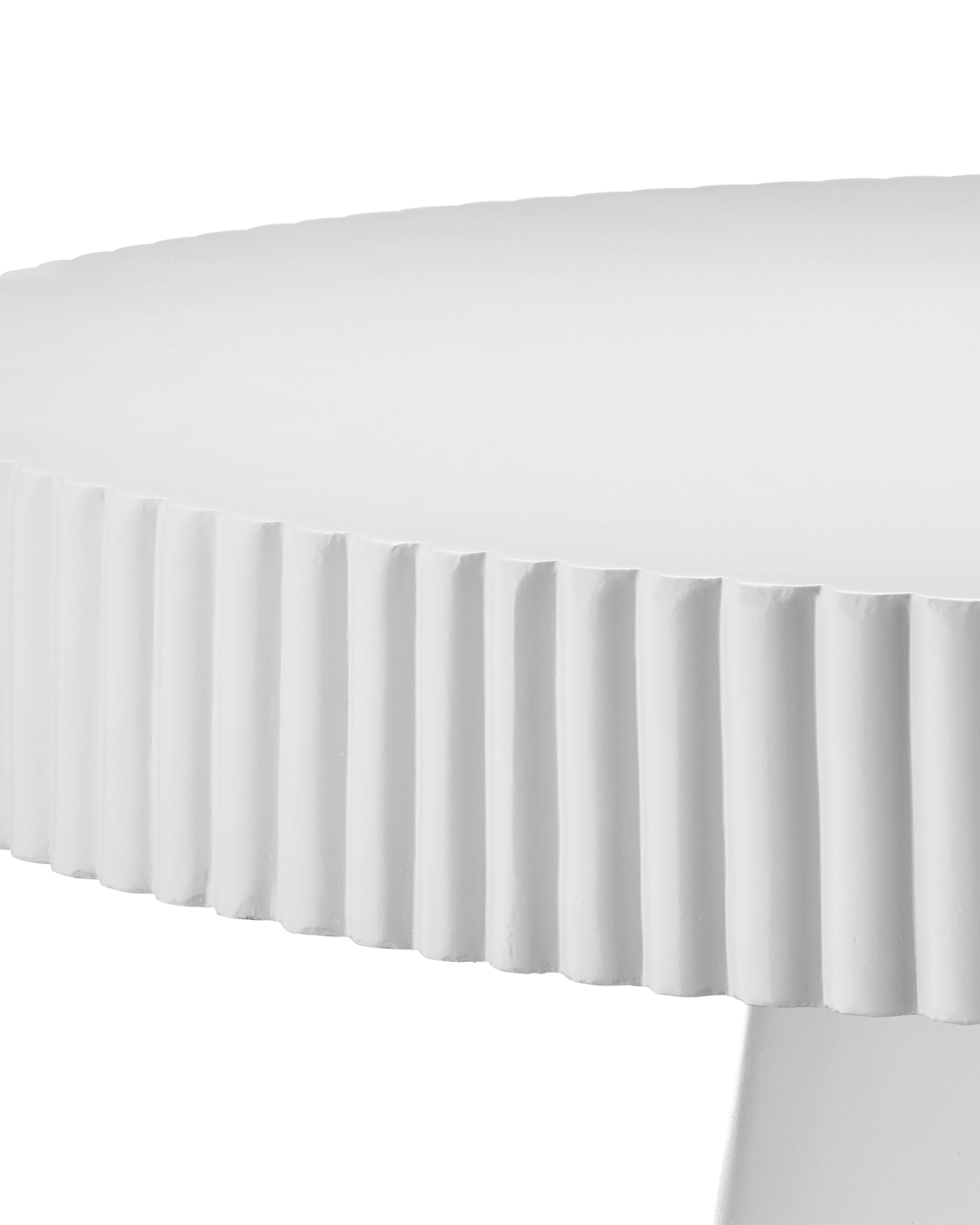 The Harlow White Concrete Cocktail Table, which is handcrafted from concrete that is covered in a white acrylic finish, will withstand weather so it's ideal for outdoor rooms set within terraces and loggias. The crispness of the finish also makes this a modern patio table perfect for homes with contemporary leanings. The white garden table has a fluted edge around its top to bring the piece an uptick in personality.