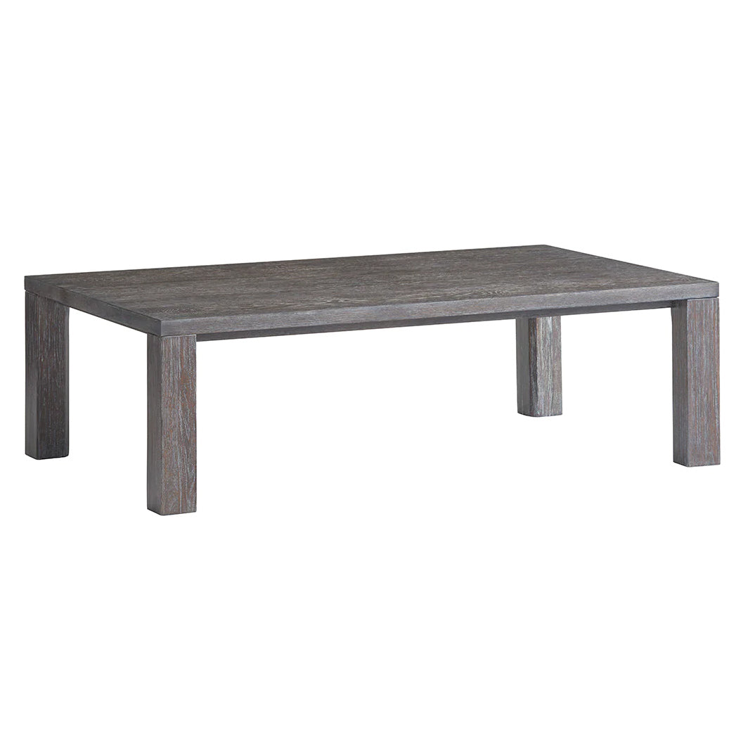 The Impulse cocktail table features a classic Parson’s design, whose wooden top is gently wire-brushed to accentuate the oak grain lines and cerused finish. Designs in Santana reflect today's casual contemporary lifestyle. The aesthetic is inviting and approachable, with clean architectural lines and an understated urban vibe. Piece are crafted from oak veneers in a cerused gray finish with warm brown undertones. Soft ivory highlights accent cathedral grain lines in the oak, while custom hardware in a polished graphite finish adds a sparkle to the designs. Correlating upholstered seating is moderate in scale and sleek in styling, with color palettes that emphasize shades of ivory, taupe and gray. Welcome to a fresh take on casual contemporary living, with Santana, from Lexington.