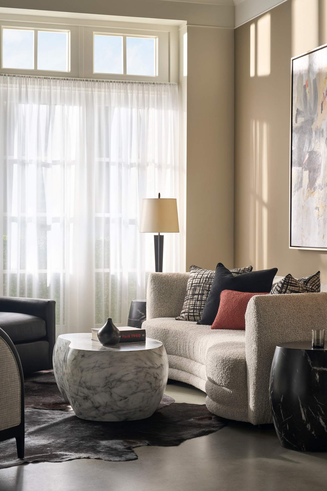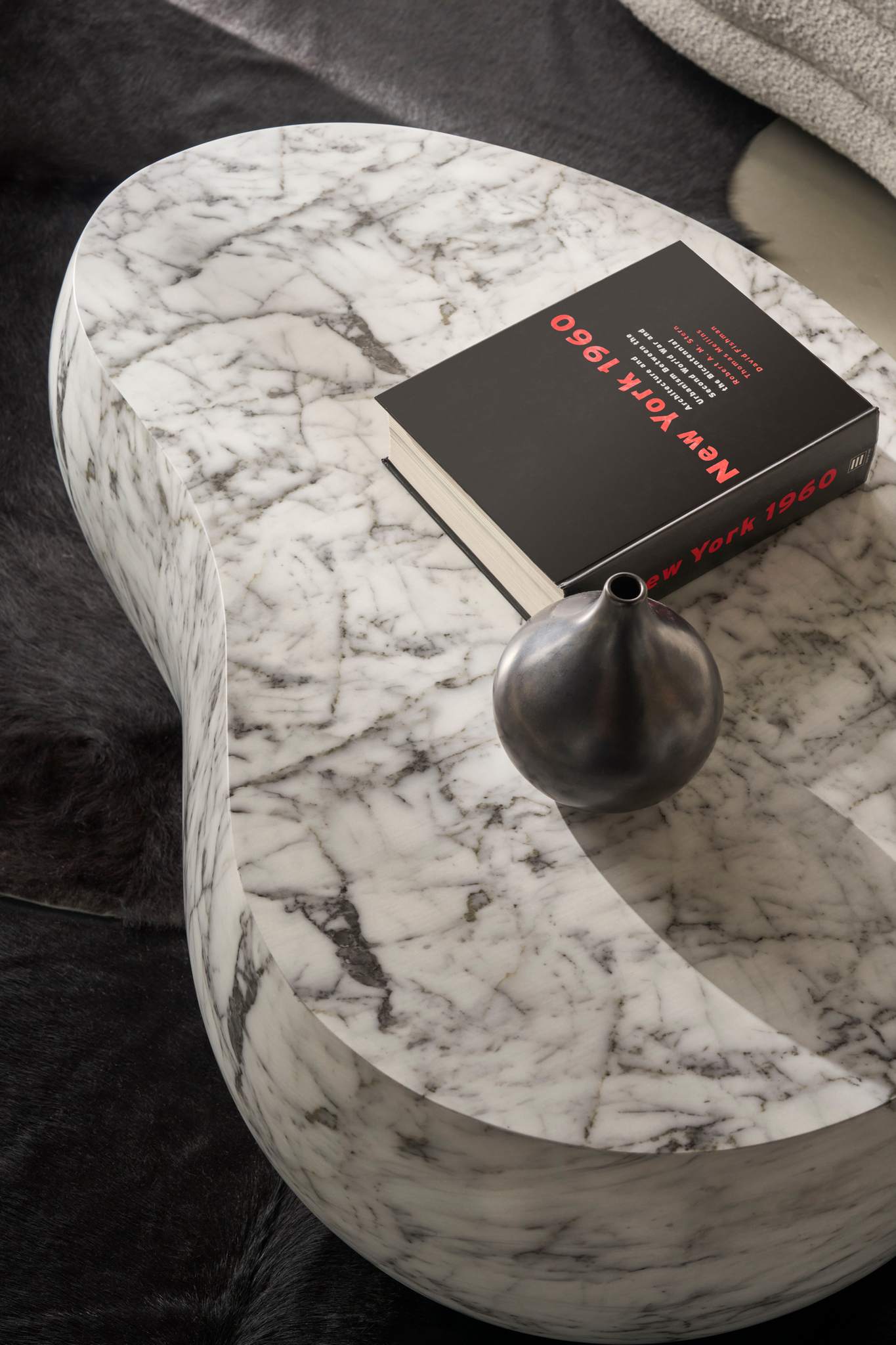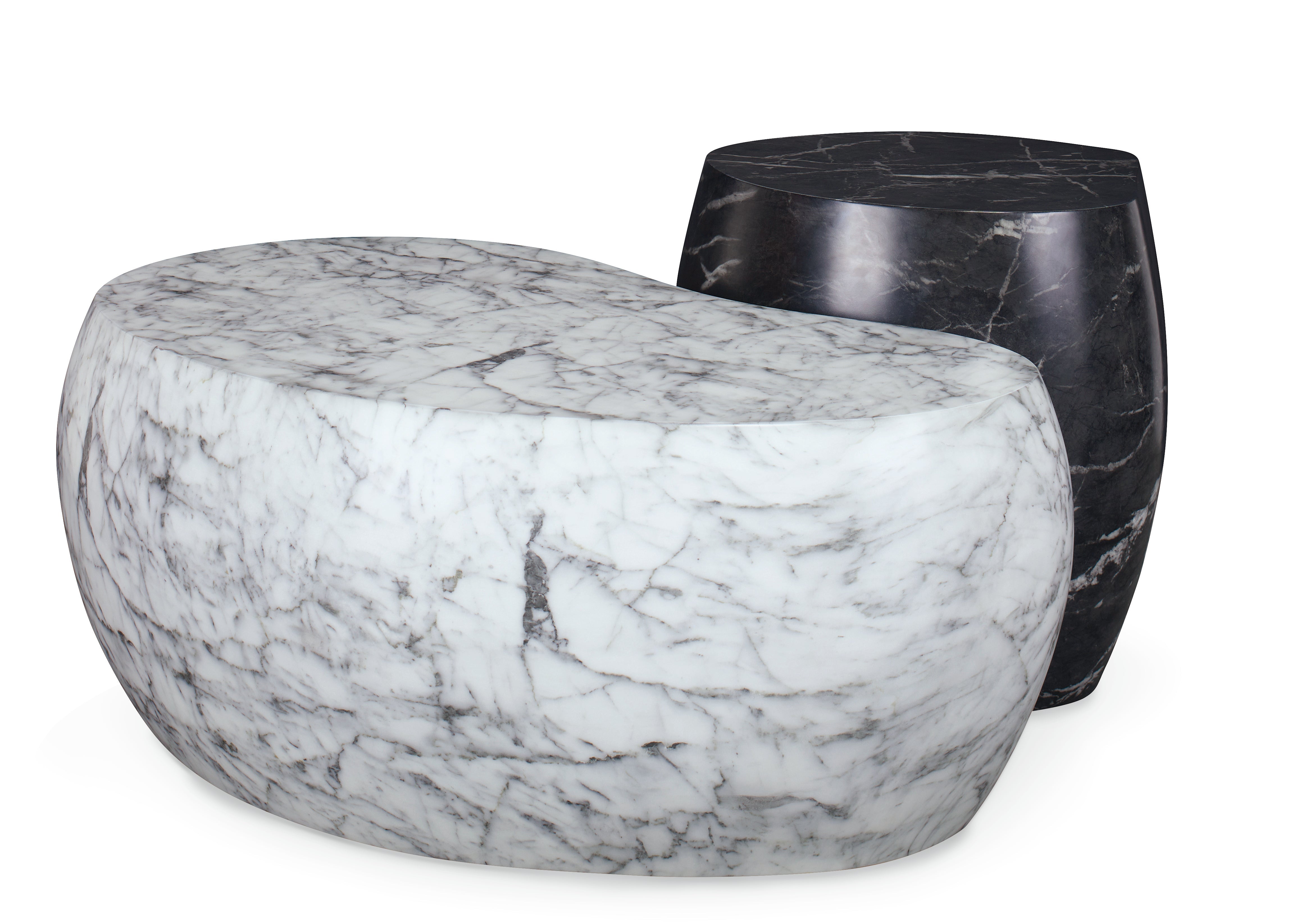 The organic shapes of the Cadence Bunching cocktail tables combined with the marble like finishes make these tables statement pieces. Free flowing forms constructed of reinforced concrete, designed to work as a pair but also work nicely separated as singles. The Small table's finish is reminiscent of Nero Marble while the Large table has dramatic black veining similar to Carrara marble.