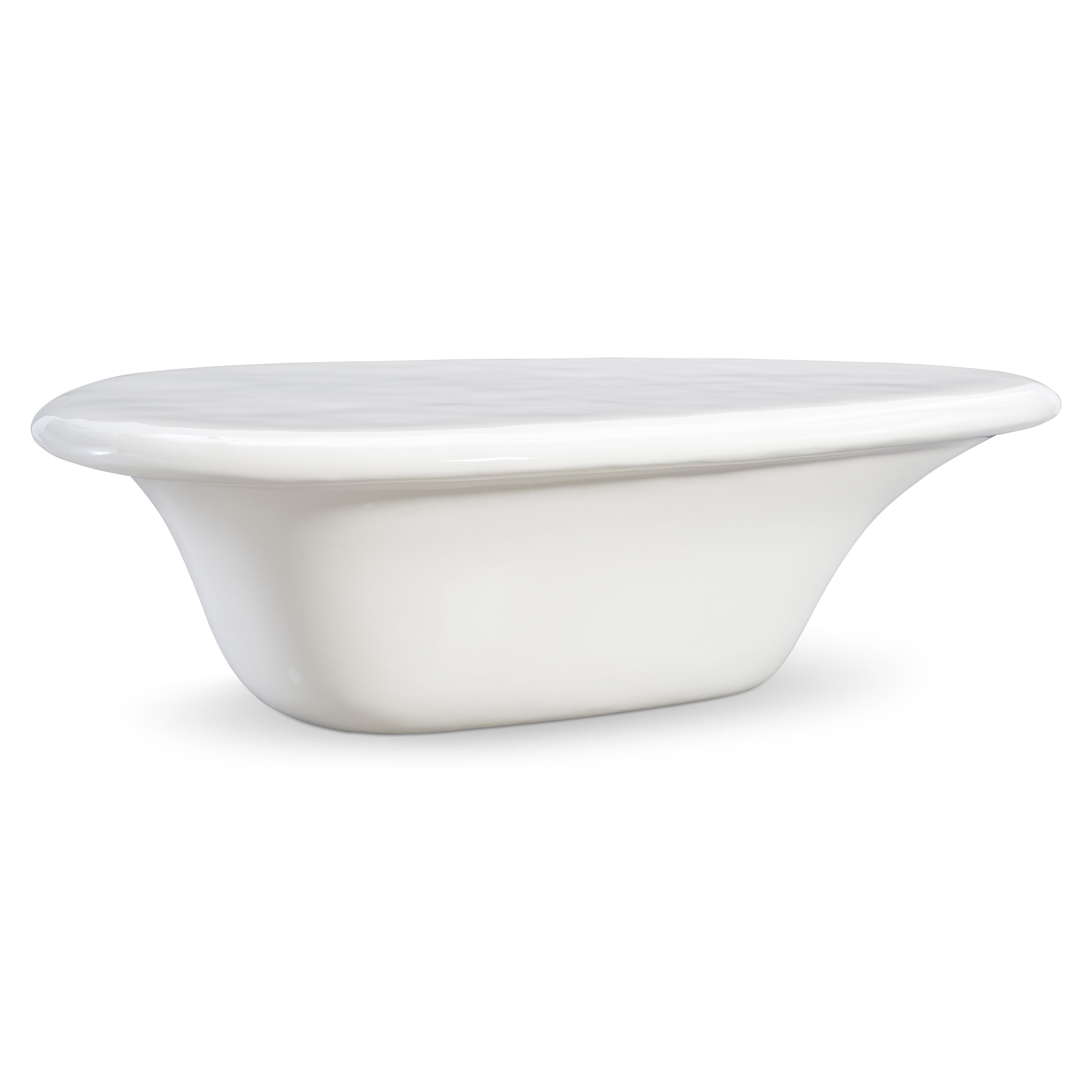 Like a wave just about to crest, the Poca cocktail table offers a fluid shape that rises from the floor. The glass reinforced concrete table has a wavy textured top and a smooth base in Lumen finish.
