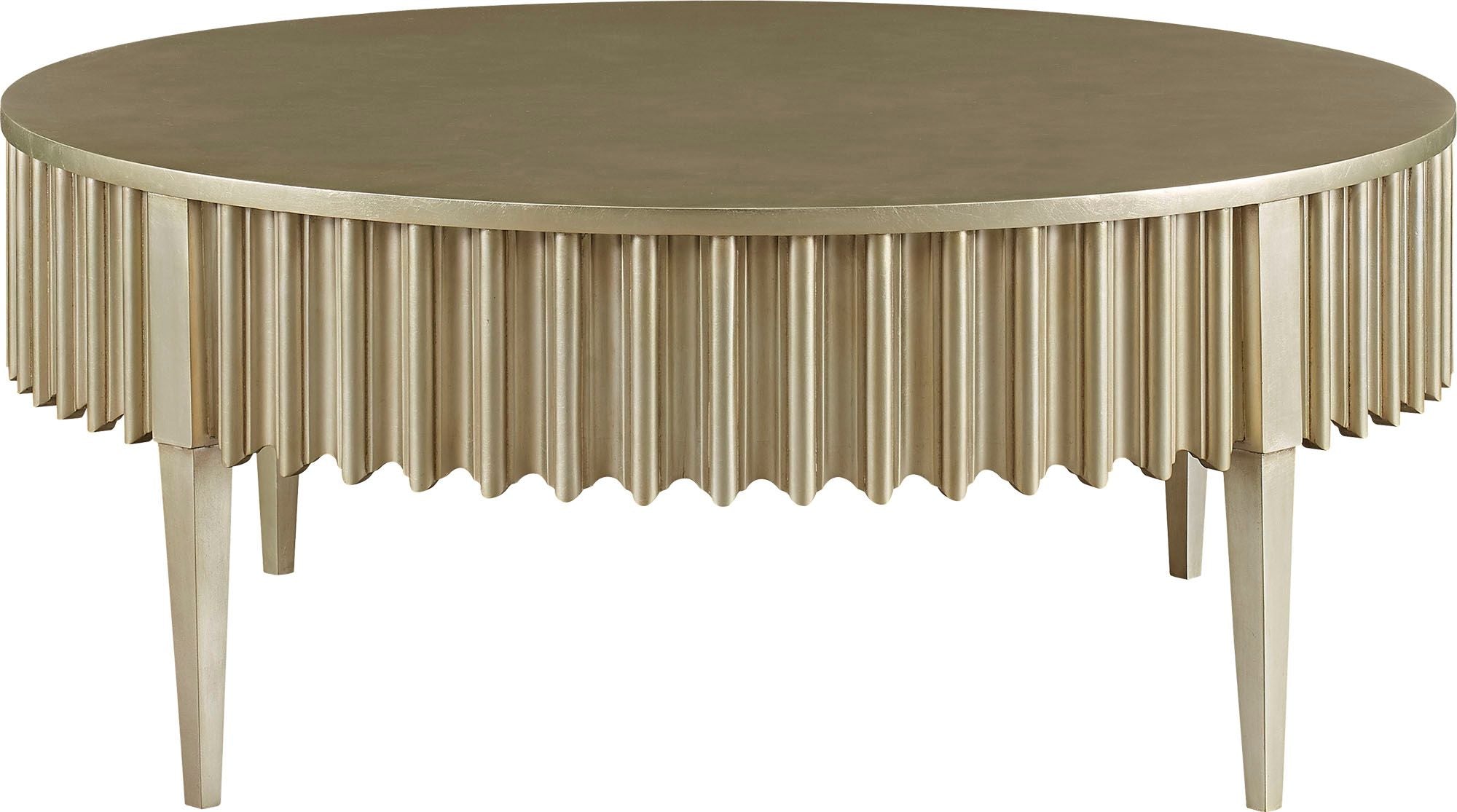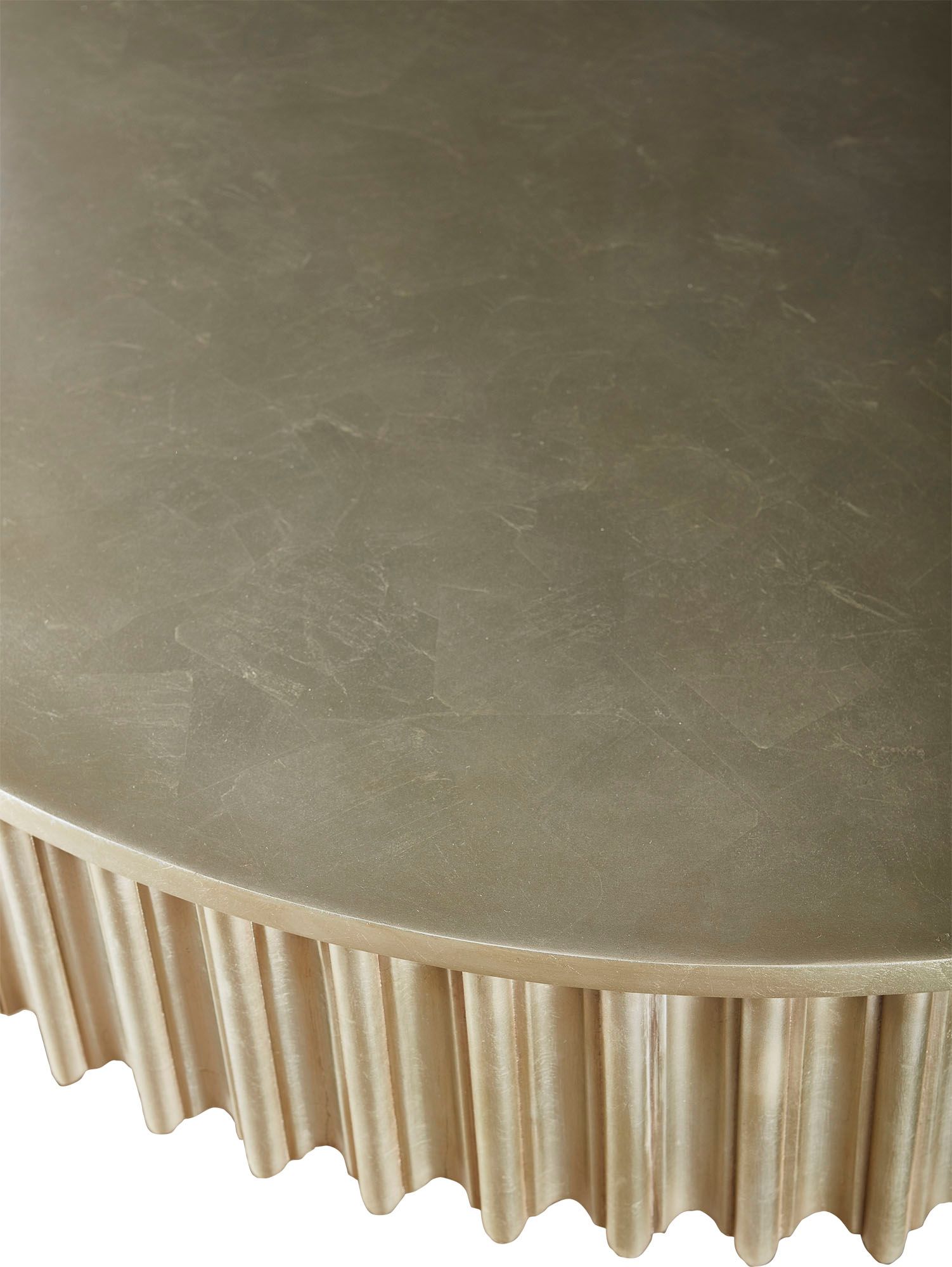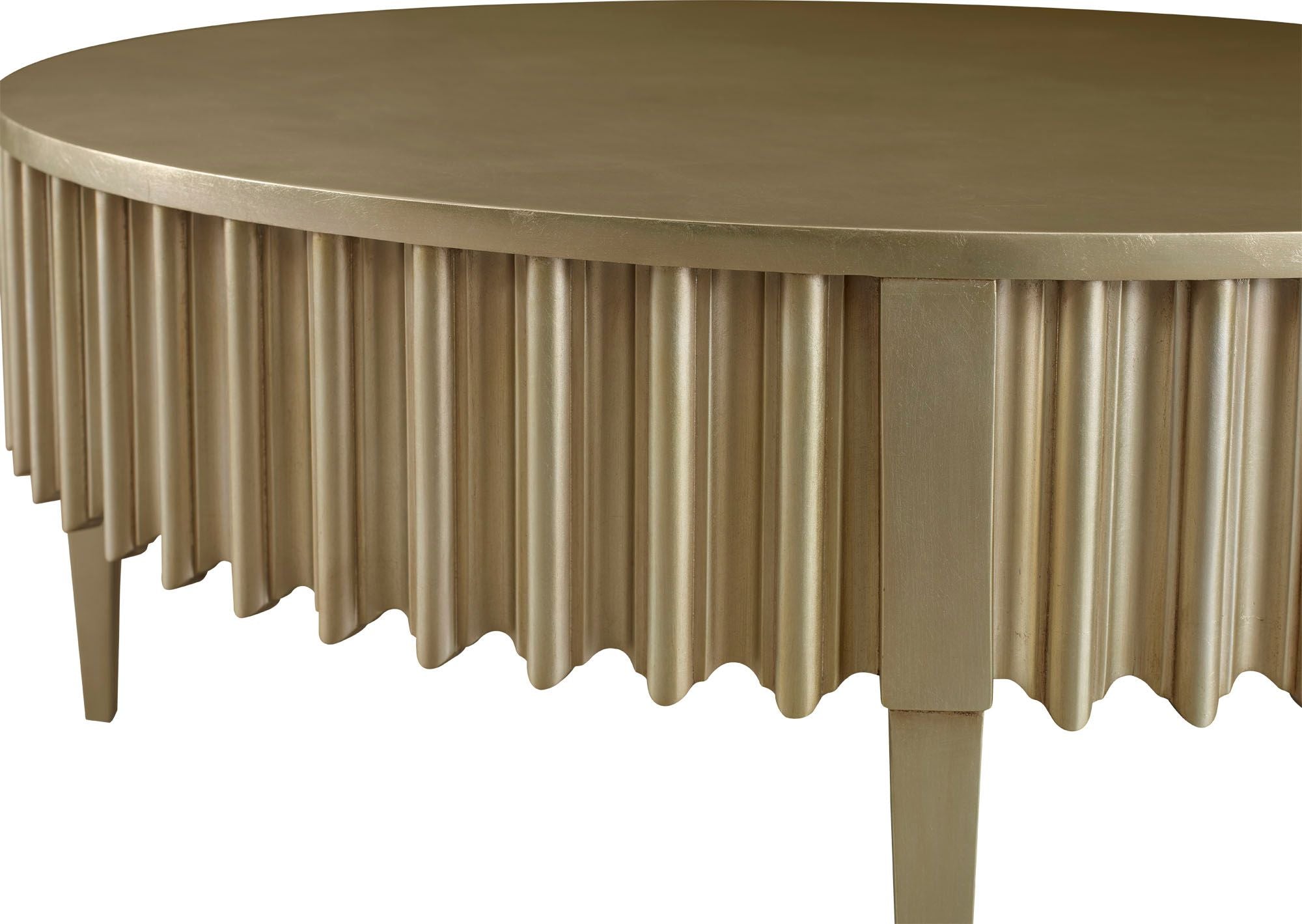 The Reese Cocktail Table is a completely unique, contemporary form defined by ruffles and ribbon detailing. Its surface is finished in irregular white gold leafing.