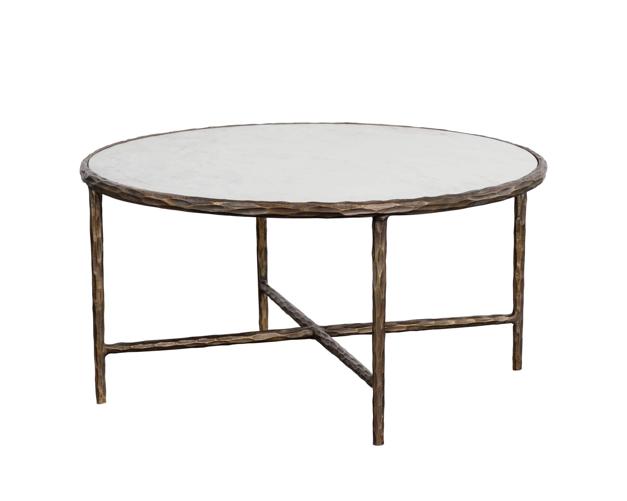 Refined white Banswara marble balanced with the artful look of hand-hammered metal elevates the traditional style of the Riyaz Coffee Table. Its rounded shape and complimentary tones allow this coffee table to enhance any living space.