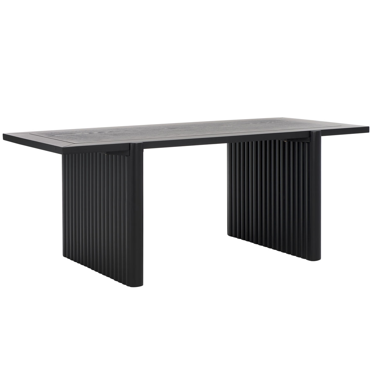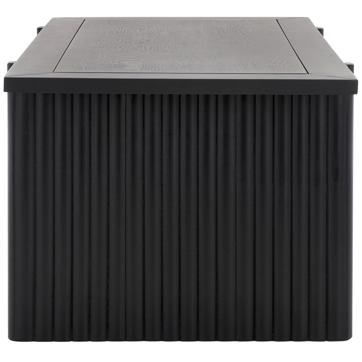 The rustic-chic utilitarian's dream, this Buckley Rectangle Coffee Table is perfectly styled to suit any modern decor. Buckley's straightforward silhouette is beautifully displayed in a black finish, while the carved fluted details on its sawhorse-inspired frame add a touch of modern artistry.