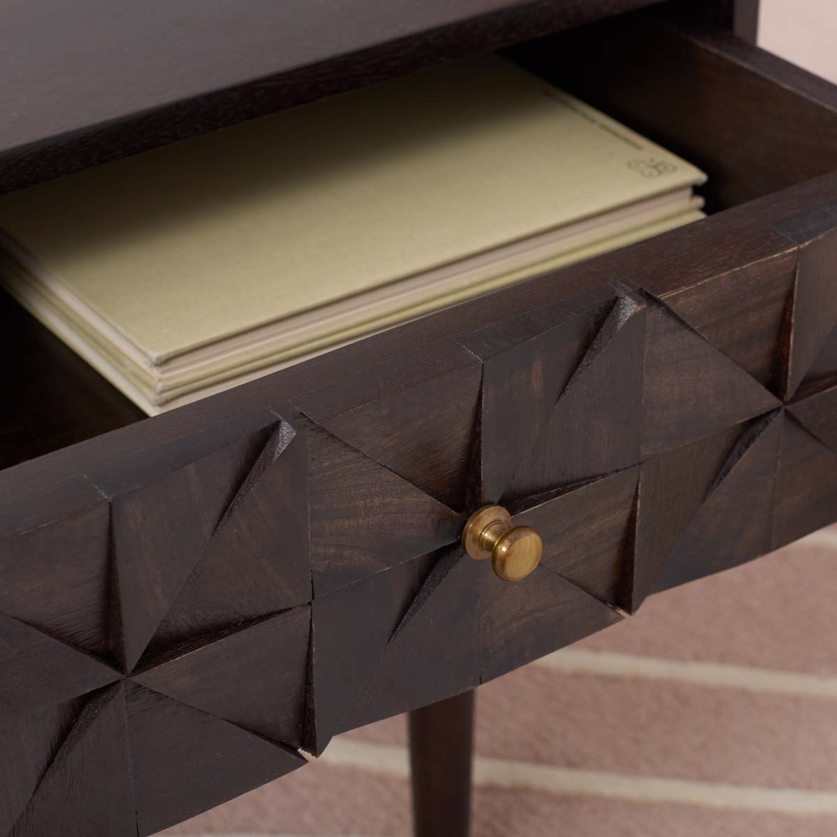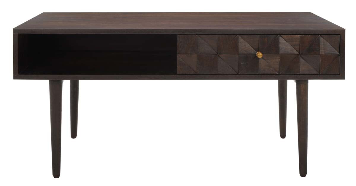 This lavishly designed Lexington Coffee Table is the perfect piece to enrich your living room with sophisticated modern chic. Providing plentiful storage with an open shelf and hard-carved faceted drawer, Lexington?? warm walnut finish seamlessly accents any interior?? color scheme.