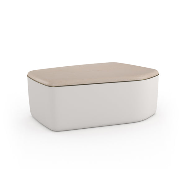 Named after the famous pebbly African desert, the five-sided Medium Serir Cocktail Table has an amorphous shape, like a tumbled stone, with rounded sides and no sides measuring the same width or length. The top is a beautiful, smooth Crème Travertine trimmed in a bead of Whisper of Gold metal. The base has an Almost White finish and the sides are upholstered in textured Ivory Mélange Performance Bouclé. The top is surrounded by a thin banded trim in Whisper of Gold metal and removes for added storage. Its inside is finished in Almost White.