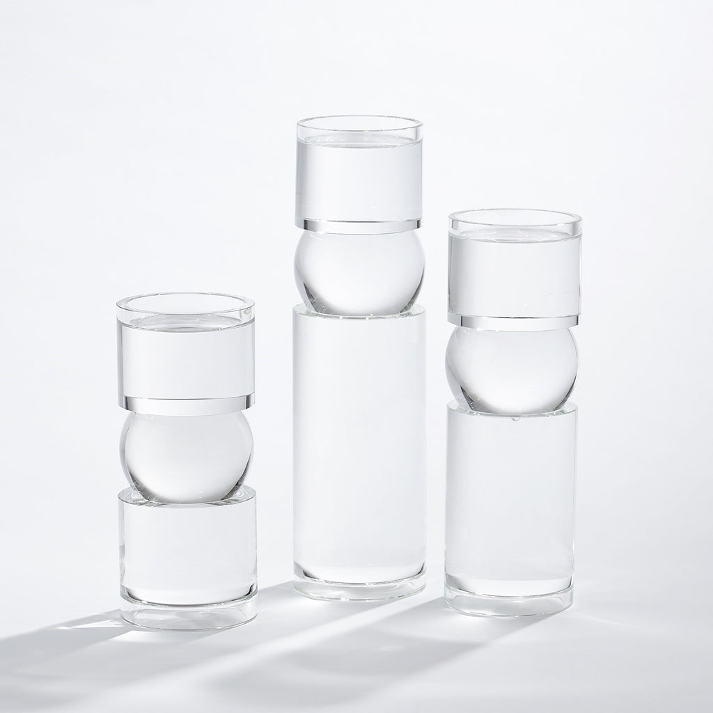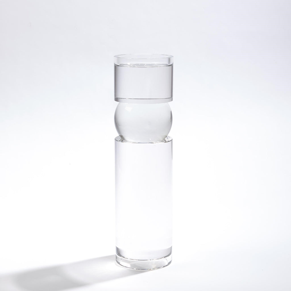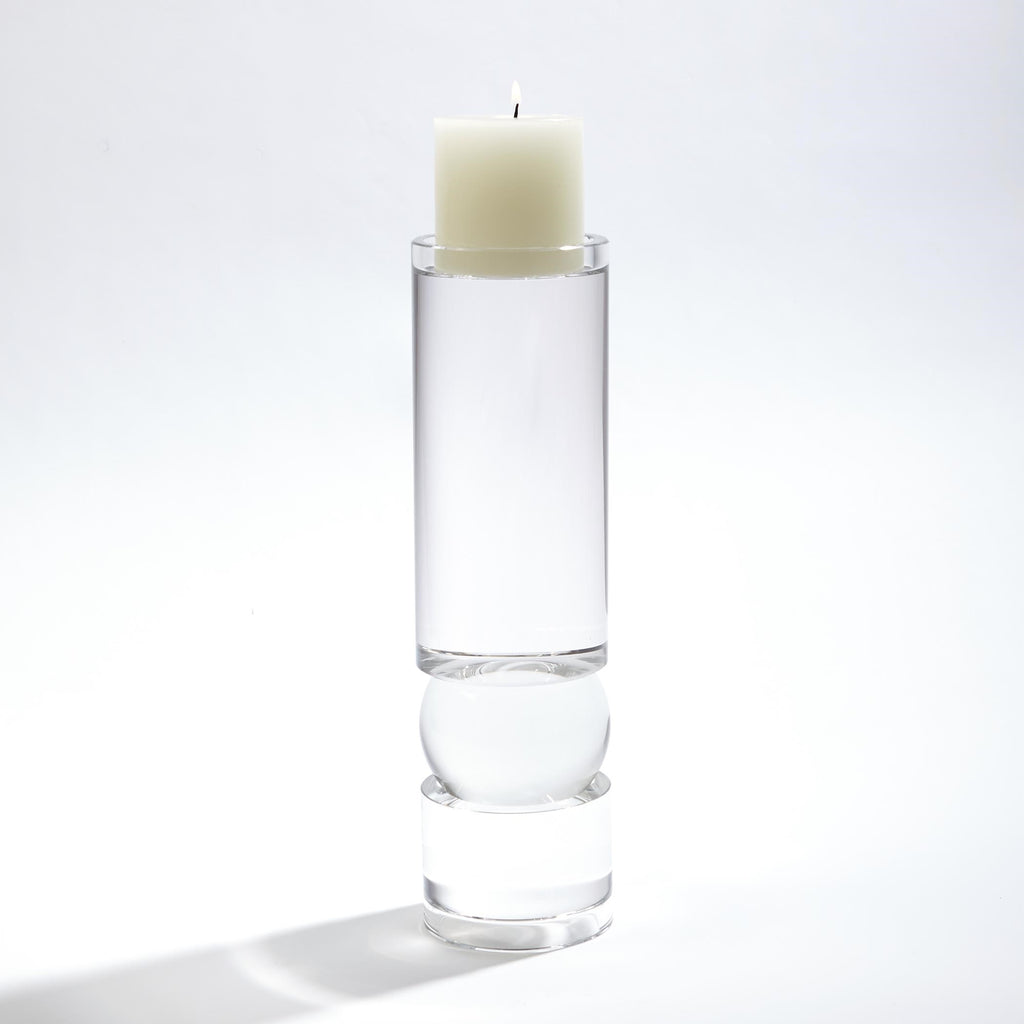 Perfectly clear glass has been shaped to form our Bipolar Crystal Candleholder. A round ball shape sits between two cylindrical pieces. Top with a pillar candle to create a warm glow.