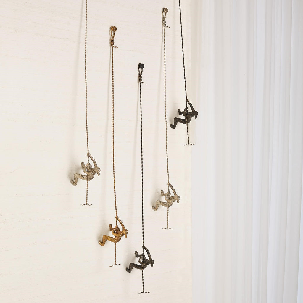 Chic-meets-industrial in this thought-provoking take on wall décor. Crafted in solid cast iron, the climbing woman is a reminder of everyday triumphs and represents the rewards of working hard to get to that next level-be it in life, work, or passion. This piece goes beyond the confines of design, and seeks to inspire the viewer, acting as a visual reminder of the challenges life presents and the effort that it takes to overcome them. Available in Bronze, Thai Gold Leaf, and Thai Silver Leaf finishes.