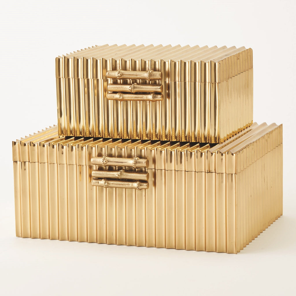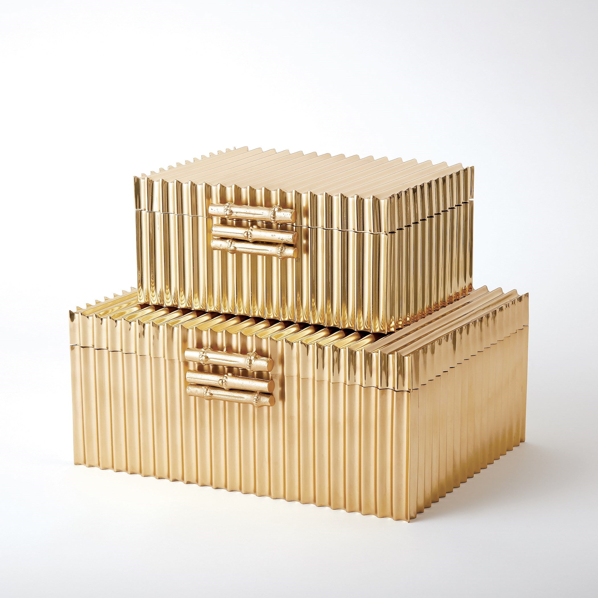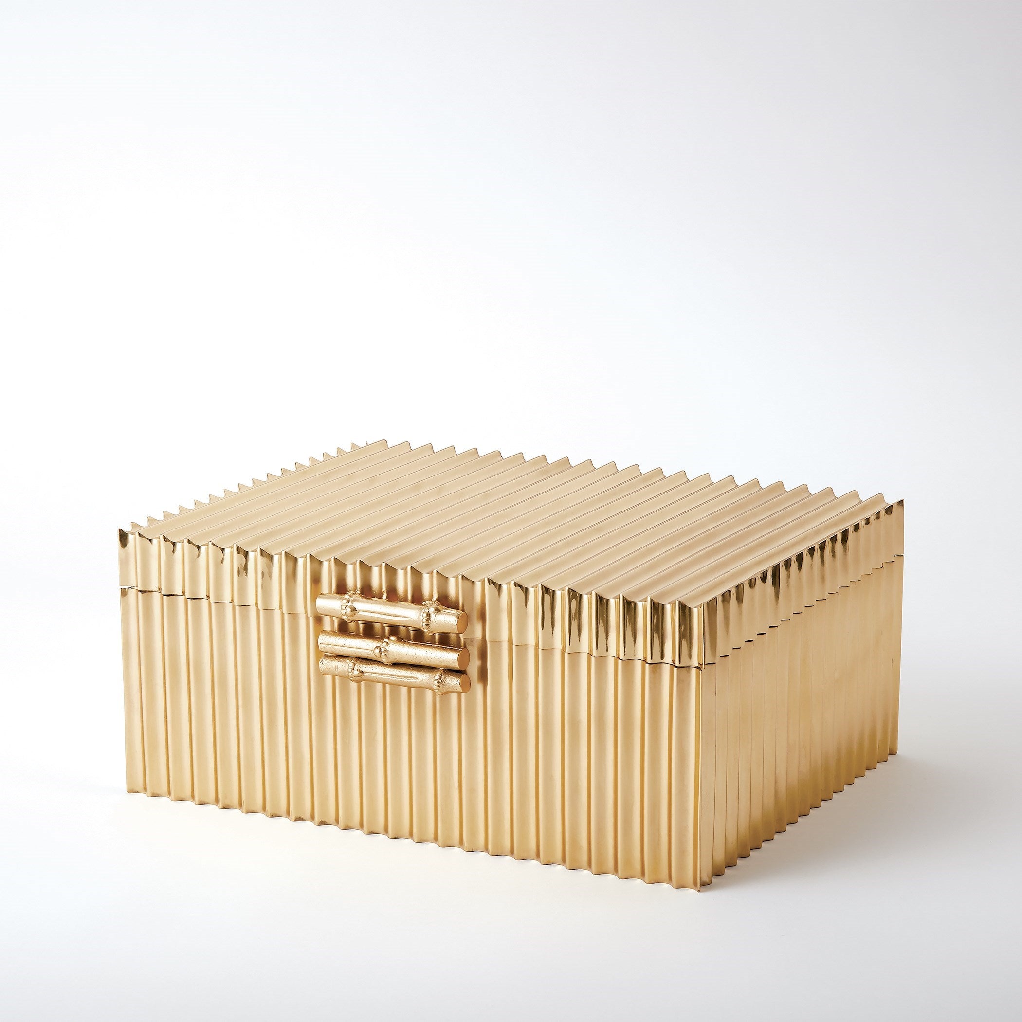Corrugated Bamboo Box-Brass-Lg | Global Views - 9.92034