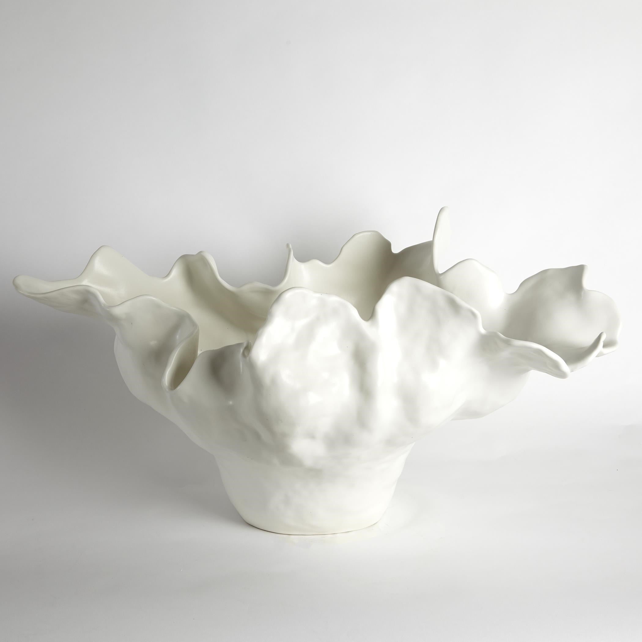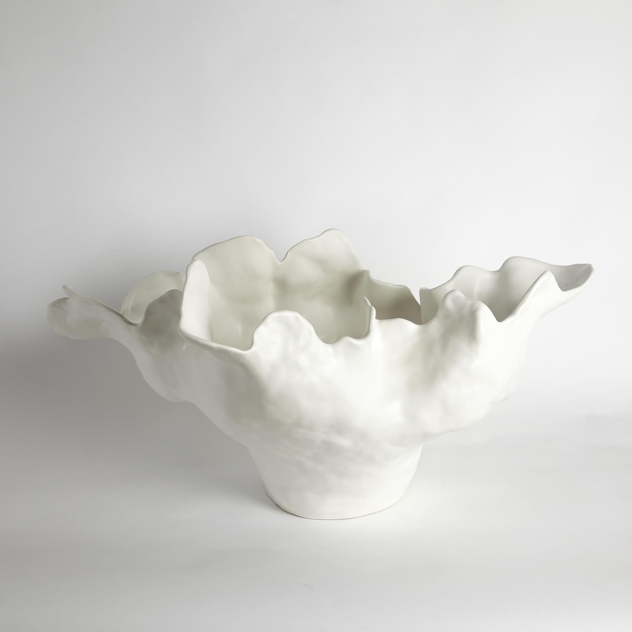 Based on the popularity of our Meteor Bowls, we have created two new sizes and a new color. The original of this grand statement piece was created by a Portuguese artist whose work first caught our designers' eyes at an art fair in Portugal. It took years of collaboration to arrive at this design that can be consistently produced. Multiple pieces are cast, bound together, and fired. Then it receives a reactive glaze and is fired a second time. There is a tremendous amount of artisan work that goes into every piece. Entire rooms could be designed around this beautiful and functional sculpture.