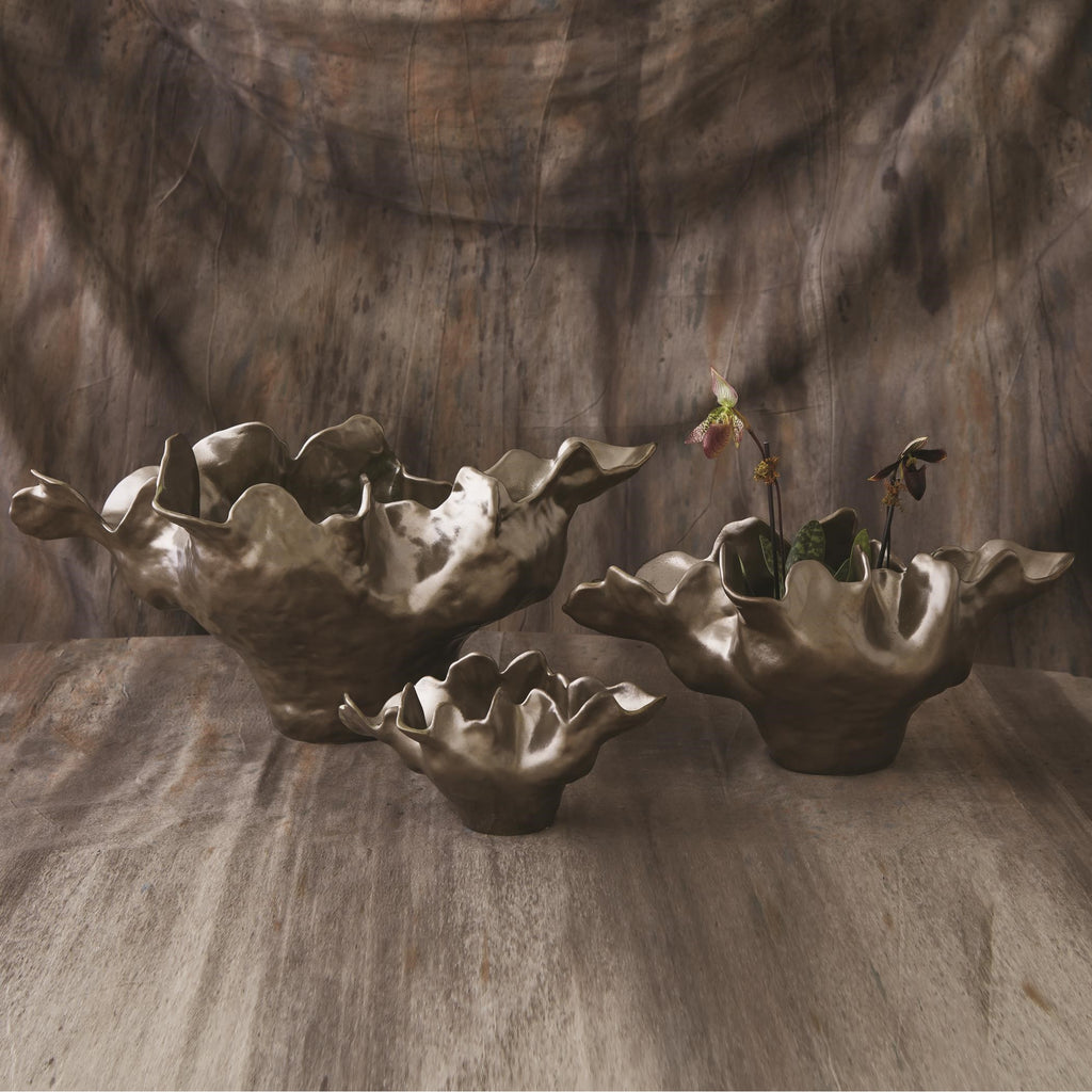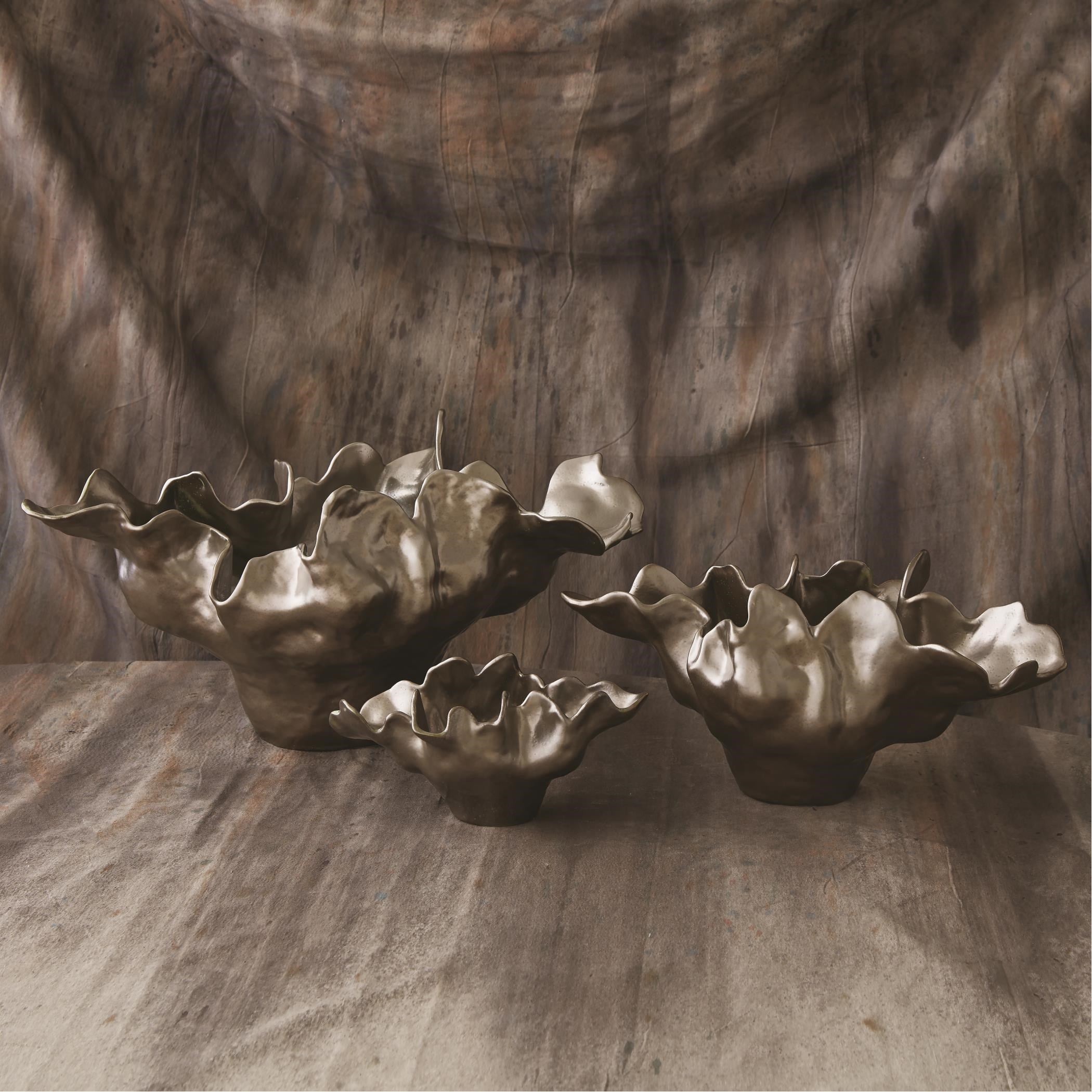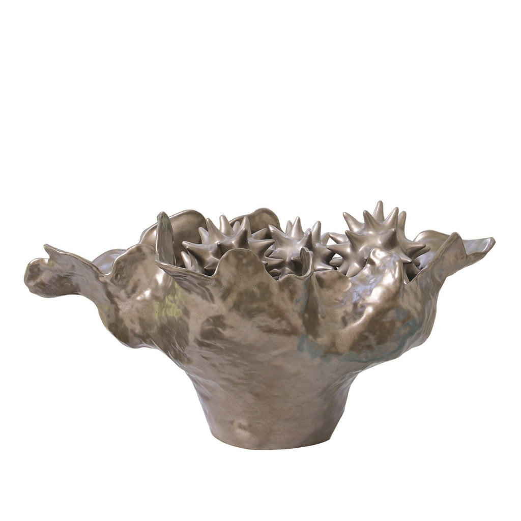 The original of this grand statement piece was created by a Portuguese artist whose work first caught our designers eyes at an art fair in Portugal. It took years of collaboration to arrive at this design that can be consistently produced Multiple pieces are cast, bound together, and fired. Then it receives a reactive glaze and is fired a second time. There is a tremendous amount of artisan work that goes into every piece.