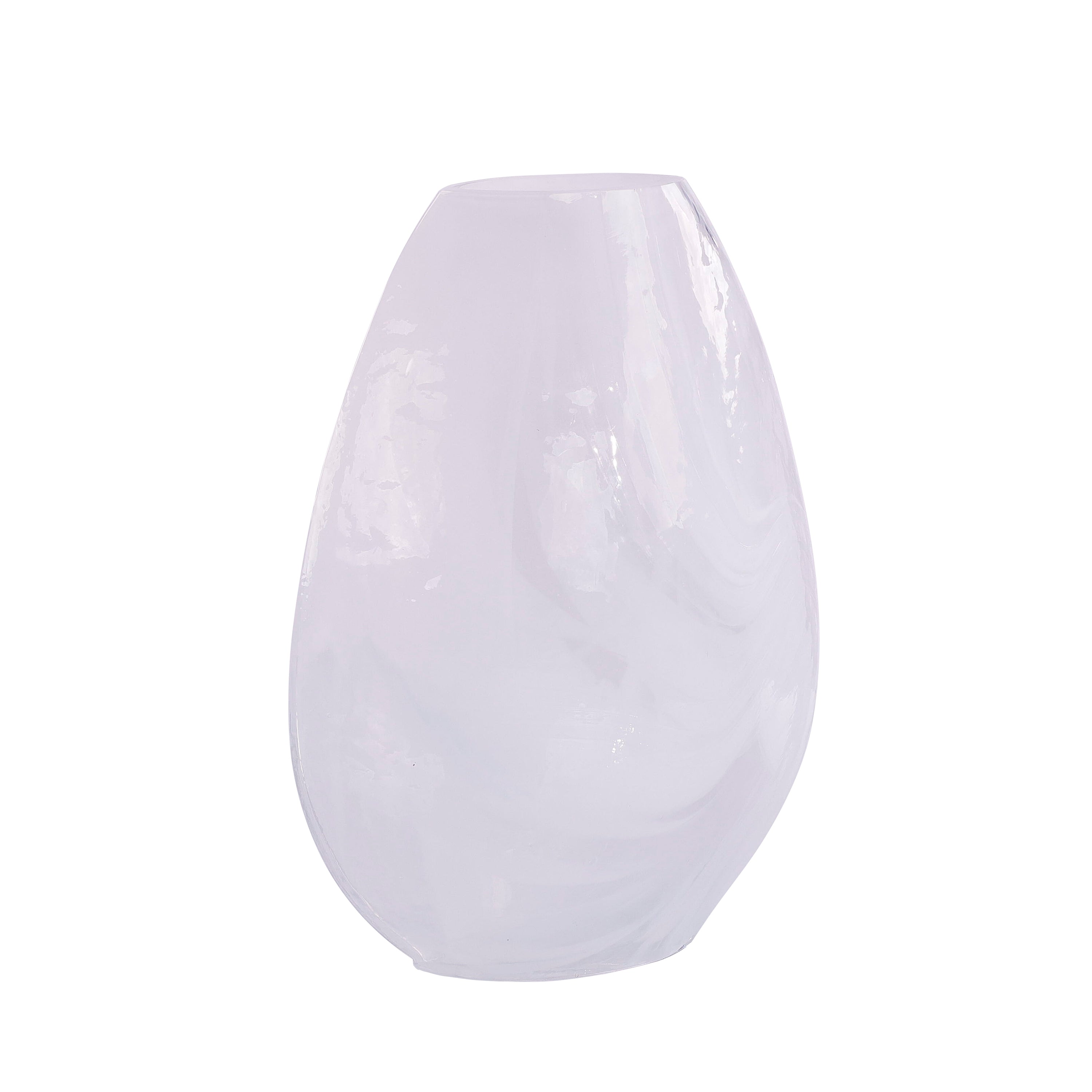 The Blizzard Vase is a gorgeous decorative accent with a pristine look, showcasing a curvy silhouette and a pristine white hue. Crafted from white art glass, the vase is overlain with swirling winter tones that evoke imagery of a howling blizzard.