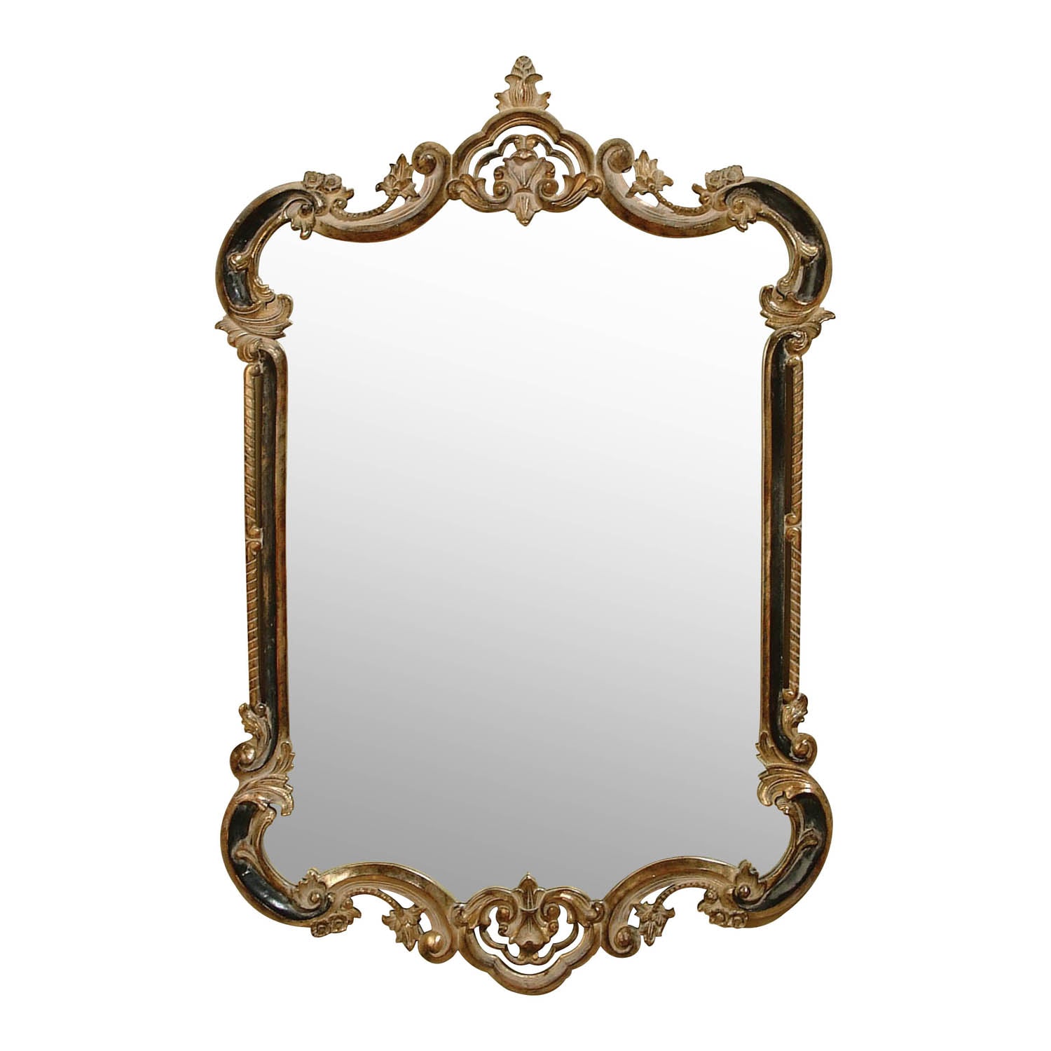 Traditional 18th Century Mirror with C-Scrolled Design in Antique Silver and Soft Black Finish