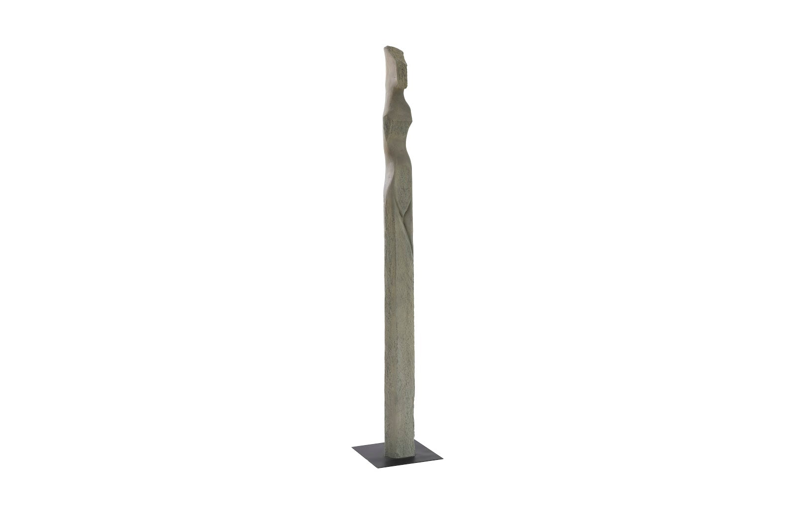 The female figure has been celebrated in art as long as artists have been expressing their creativity. The Colossal Gray Cast Woman Sculpture E is an abstracted female form in amplified proportions at 91-inches tall. The Splinter Stone finish brings it a vintage vibe, and the aged patina makes this decorative sculpture look like it’s made of stone. We have six variations of this tall, thin sculpture in gray and six in a Roman Stone finish for a lighter ivory surface.