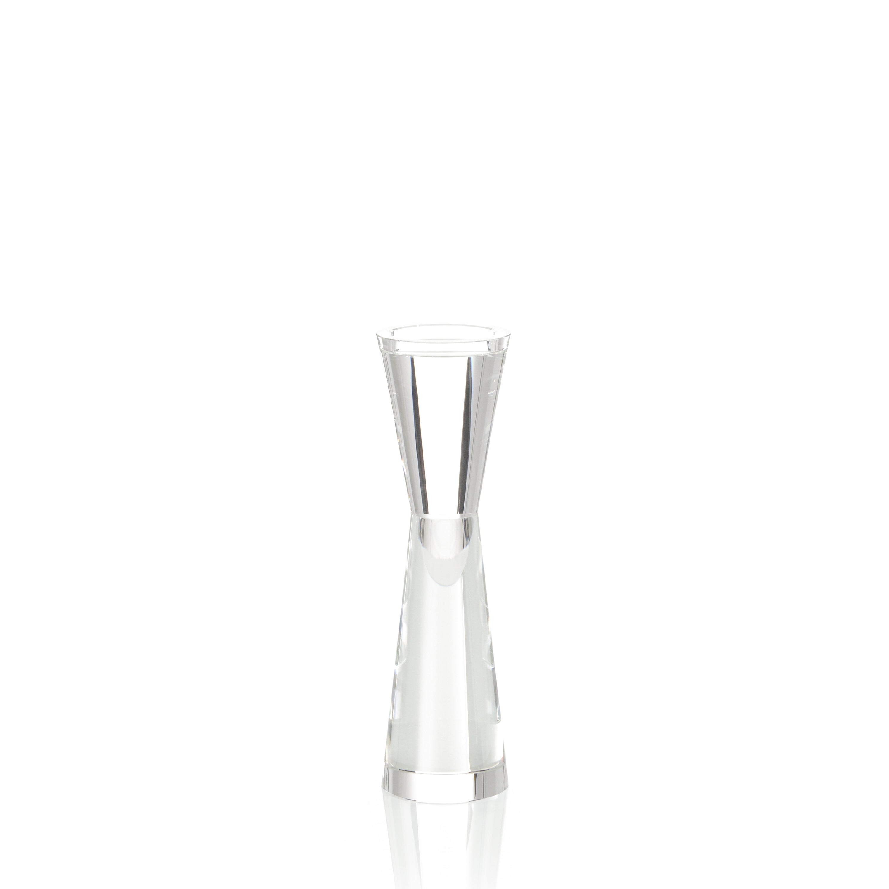 A sleek, minimalist silhouette beautifully complements the polished crystal body of this stunning hourglass-shaped candleholder. This beautiful simplicity exhibited in this piece allows it to adapt to nearly any interior space it is placed in. The Crystal Hourglass Candleholder is a gorgeous addition to any space on its own, but may also be placed next to its larger variants to further enhance the look.