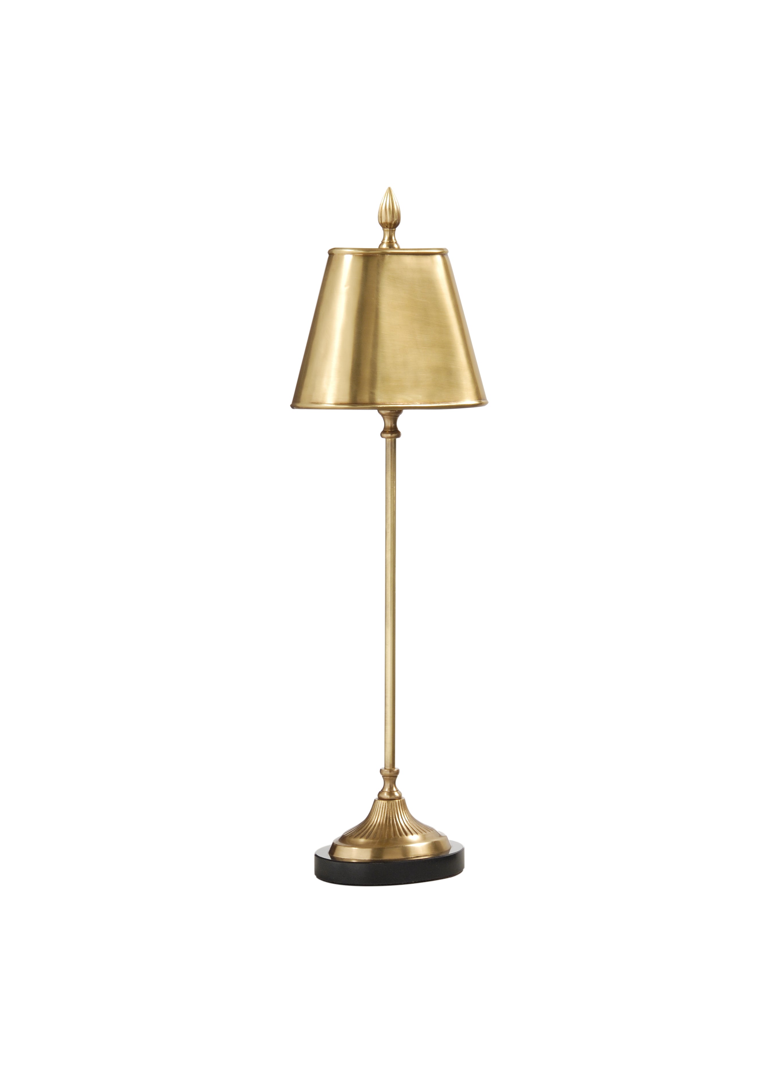 Solid brass with antique patina and marble mounting (Shade: (4.5" x 2.5") (7.25" x 4.5") x 5.5"h)
