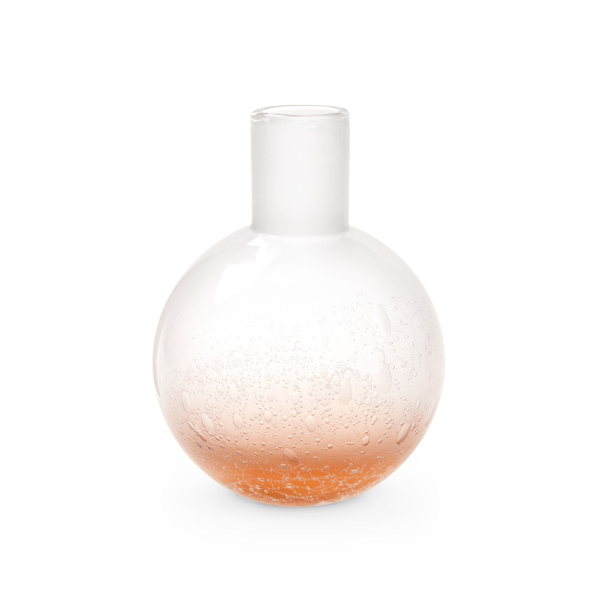 Villa & House’s masterful artisans are known for their innovative techniques and imaginative style, culminated here in the Giorgio Large Vase. Handmade glass has been mouth-blown to form the rounded shape and elongated neck. The show-stopping magic is in the details. A pink blush of color rising from its base reveals an effervescent constellation of bubbles in the glass, as if the essence of a spring rain has been captured in a bottle. A gorgeous and multifaceted fixture for a fresh stem. Stage it solo or pair with its smaller counterpart.6dia x 8h