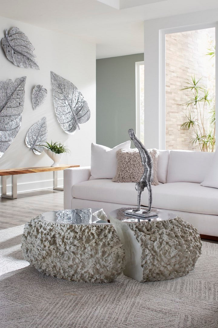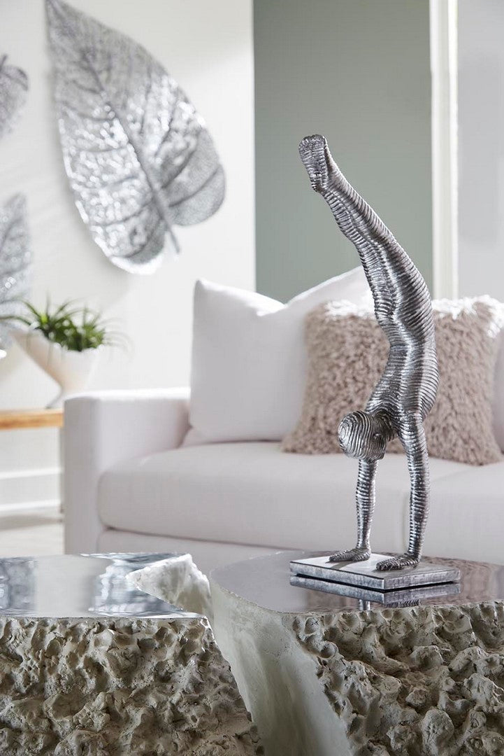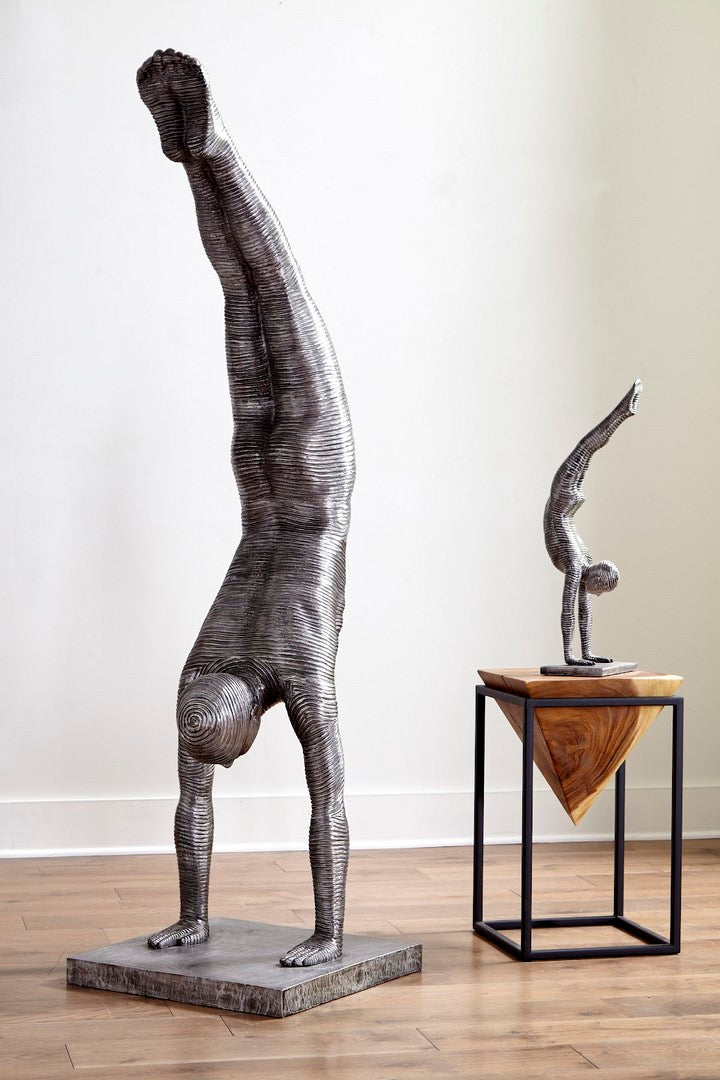 With an enviable athleticism, the Small Handstand Sculpture is forged from aluminum that has a striated surface to bring added interest to the sizable piece of art. The design of this piece has all of the hallmarks of great talent: it shows in the flatness of the hands, the position of the head, the arc of the back, and the graceful pointing of the feet. A human torso at its most fit has been captured just so. We also offer the Handstand in a larger size. Each of these reflects the ethos that Phillips Collection personifies: modern organic.