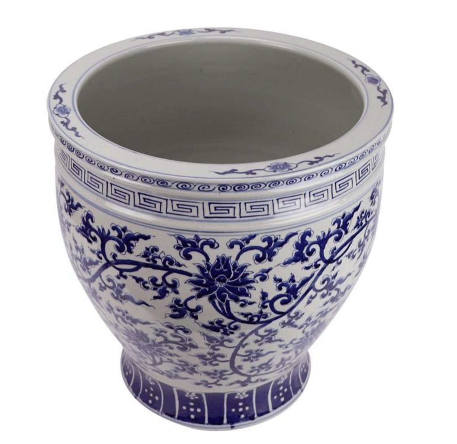 Indulge in a touch of luxury with our exclusive Lotus Floral & Vine Fishbowl. Its intricate design, featuring delicate lotus flowers and winding vines, brings a sophisticated elegance to any space. Perfectly sized for large palms, fig leaf trees, and more, this versatile piece can be used both indoors and outdoors.