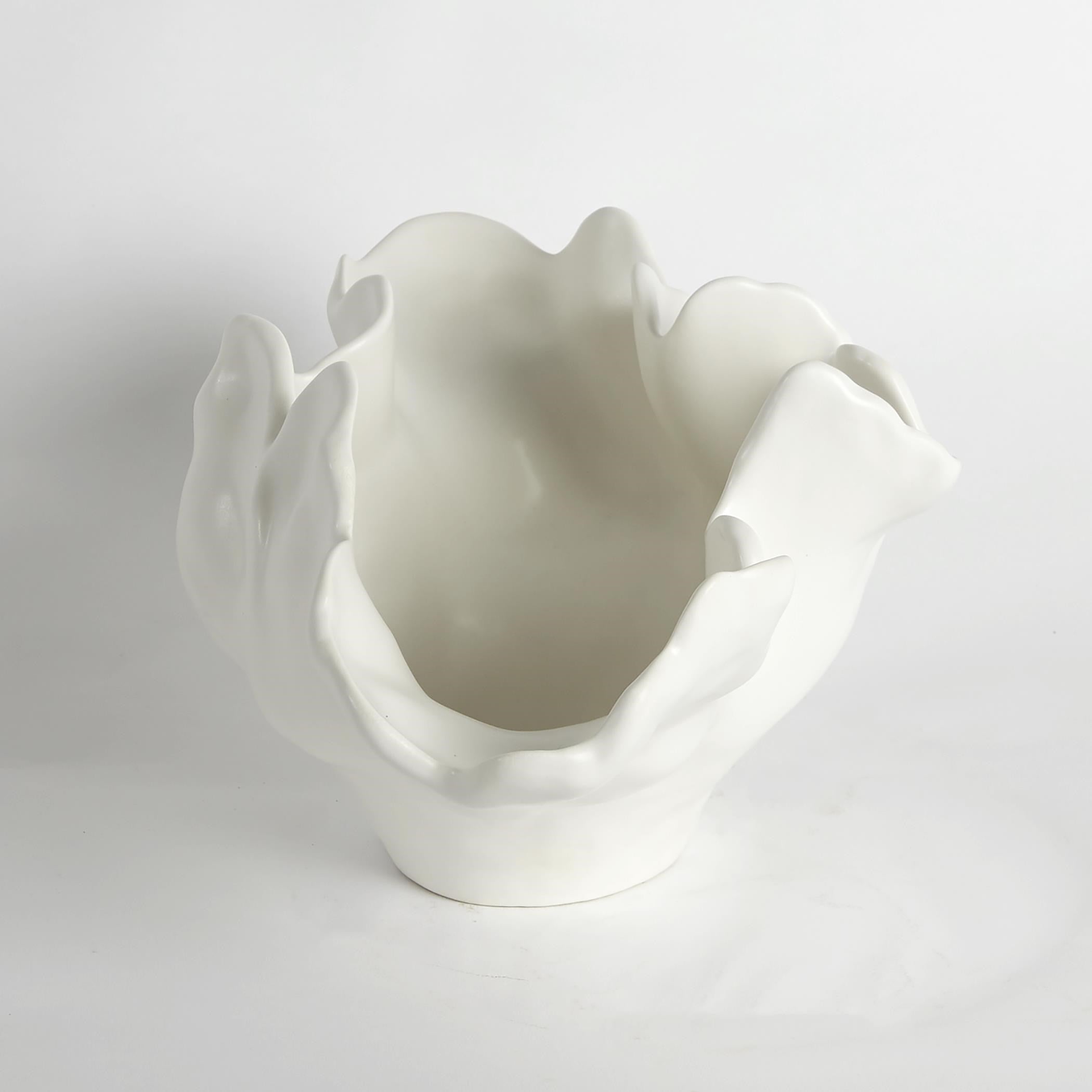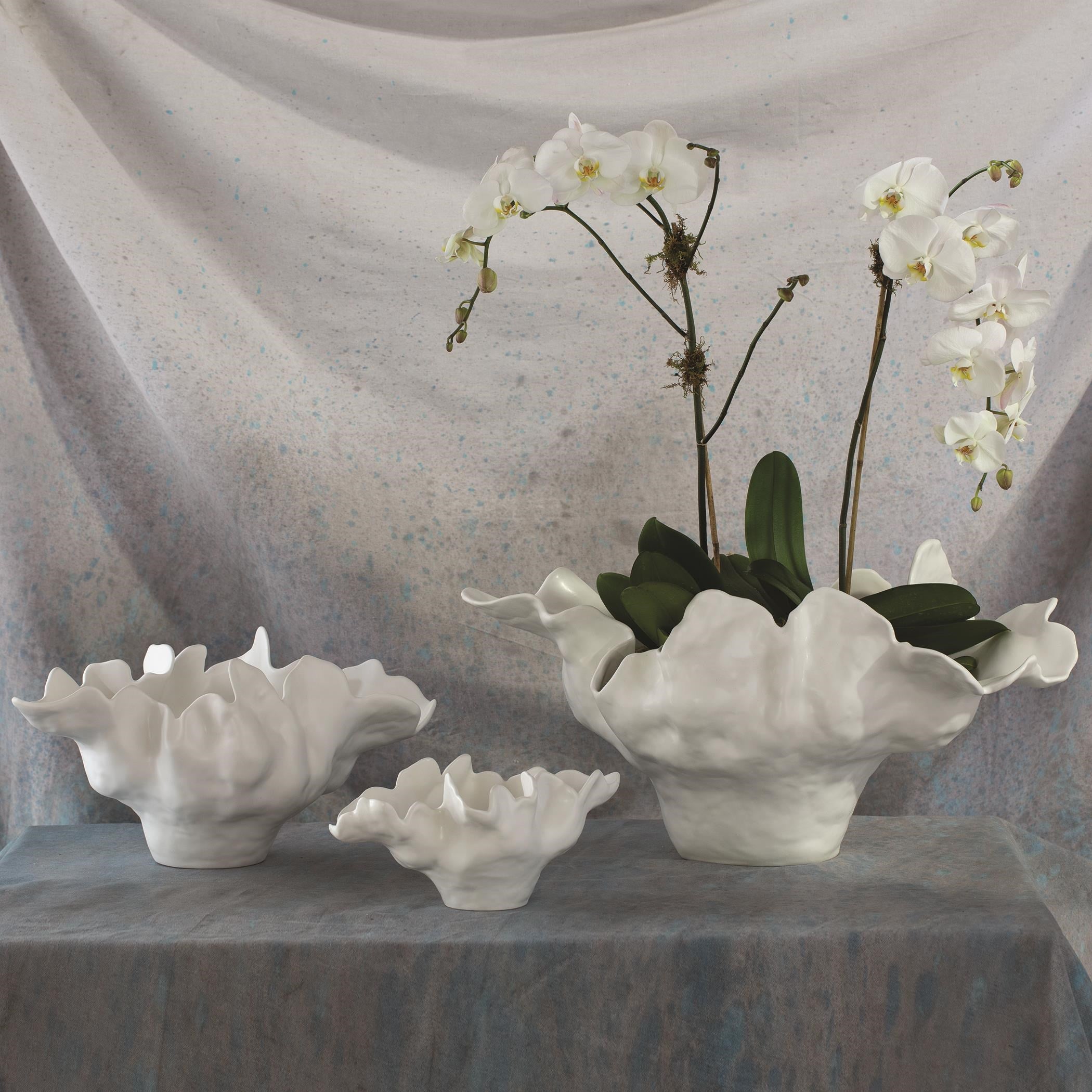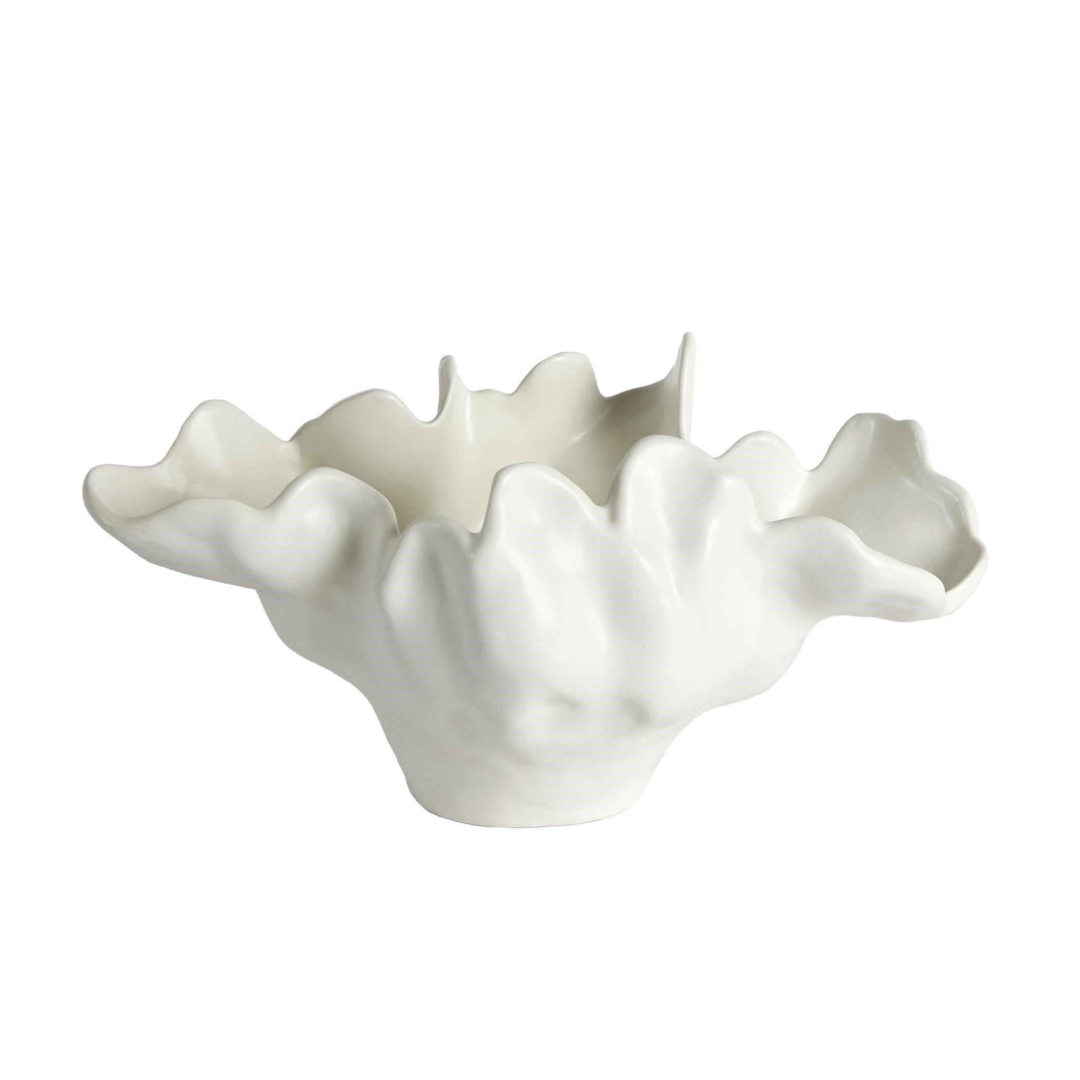 Based on the popularity of our Meteor Bowls, we have created two new sizes and a new color. The original of this grand statement piece was created by a Portuguese artist whose work first caught our designers' eyes at an art fair in Portugal. It took years of collaboration to arrive at this design that can be consistently produced. Multiple pieces are cast, bound together, and fired. Then it receives a reactive glaze and is fired a second time. There is a tremendous amount of artisan work that goes into every piece. Entire rooms could be designed around this beautiful and functional sculpture.