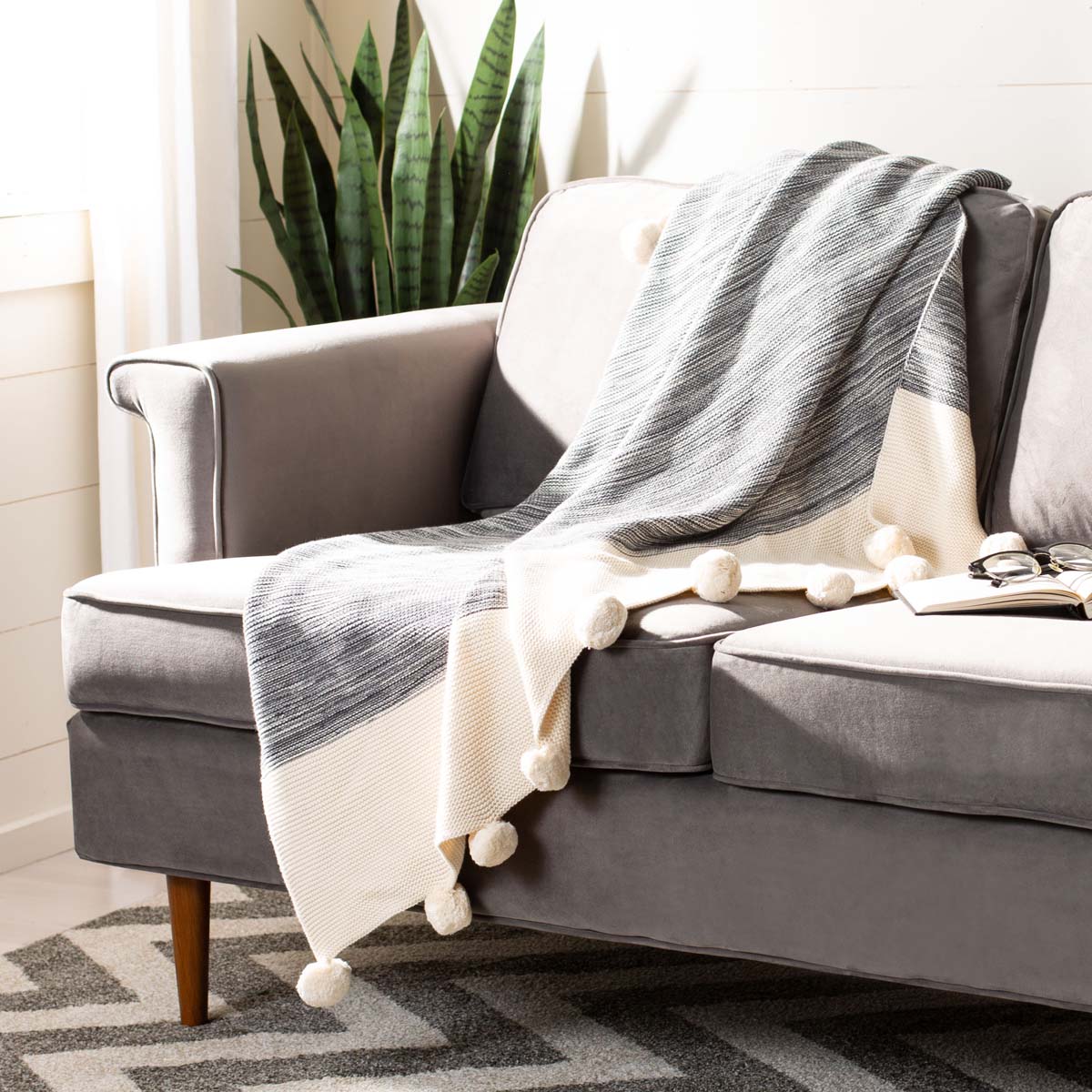 Perfect for wrapping yourself up in while studying the inside of your eyelids, the Orie Pom Pom Throw soothes the senses and brings a cozy ambiance to room d?cor. Colored in friendly neutrals and finished with playful pom poms for a touch of whimsy, Orie perfectly accents any room?? color scheme. Made using 100% cotton for lasting comfort.