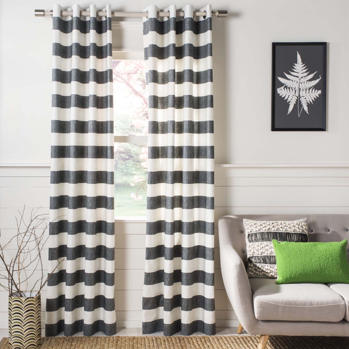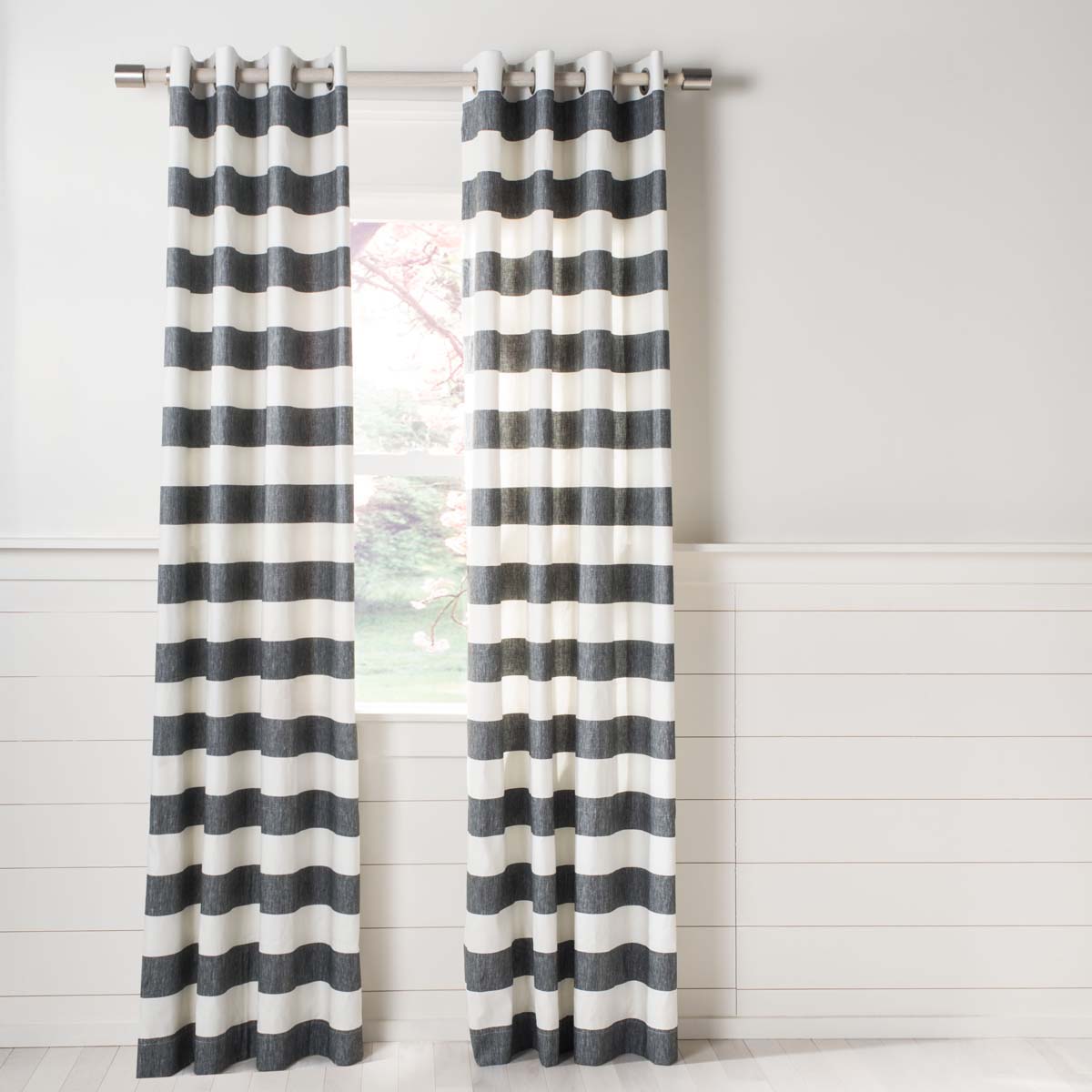 Casual, comfortable, and unmistakably mod, the Rafina Window panel brings remarkable striped styling to today?? trendy home decor. The semi sheer fabric of Rafina is made using a blend of linen and cotton, with bold horizontal stripes, colored in weathered grey and white. Its flowing design and organic energy works especially well in larger, open living spaces. Polished metal grommets make for easy installation and a smart finishing element.,Casual, comfortable, and unmistakably mod, the Rafina Window panel brings remarkable striped styling to today?? trendy home decor. The semi sheer fabric of Rafina is made using a blend of linen and cotton, with bold horizontal stripes, colored in weathered grey and white. Its flowing design and organic energy works especially well in larger, open living spaces. Polished metal grommets make for easy installation and a smart finishing element.