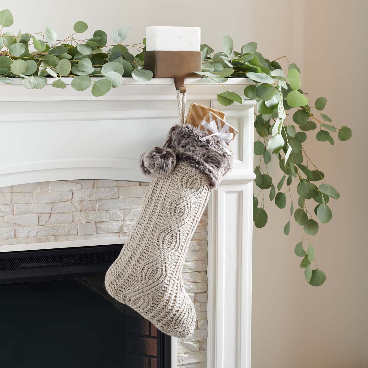 It's beginning to look a lot like Christmas, and nothing quite embodies the holiday spirit like this Gingerbread Stocking (set of two). Gingerbread's soft beige cotton showcases a delightful knit pattern that's perfectly finished by ultra-fuzzy trim and pom pom tassels.
