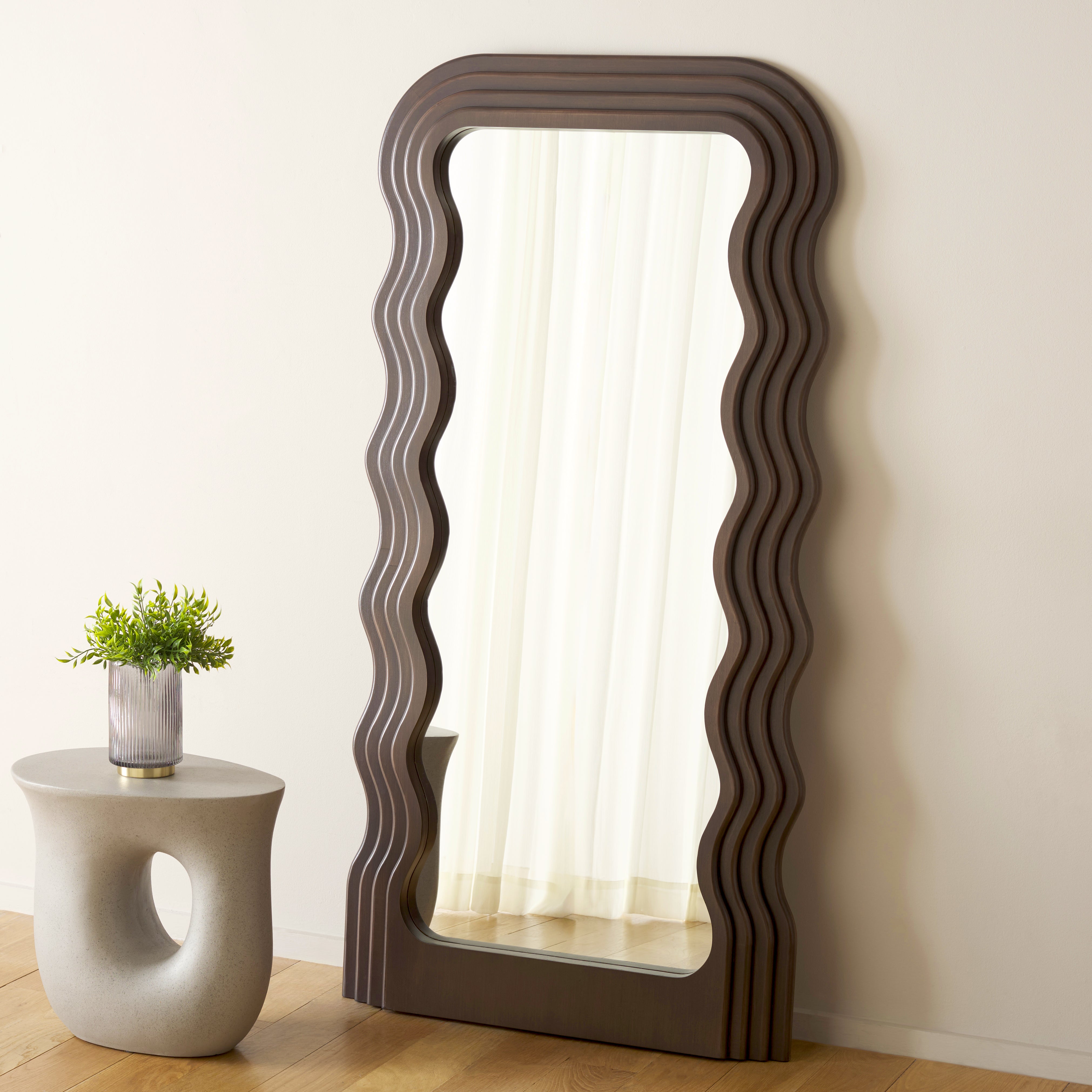 Elevate your home decor with the MAHYA MIRROR, a beautifully crafted accessory that combines practicality with aesthetic appeal. Featuring an eye-catching wooden frame, this mirror showcases a series of graceful curves that add an element of visual interest to any room. The well-structured design seamlessly blends with various interior styles, from modern to traditional, making it a versatile choice for your living space. With a reflective surface that provides a clear and accurate image, this mirror is not just a decorative piece but also a functional item for everyday use. Whether placed in a hallway, bedroom, or living area, the MAHYA MIRROR is an elegant addition that enhances the ambiance and depth of your environment.