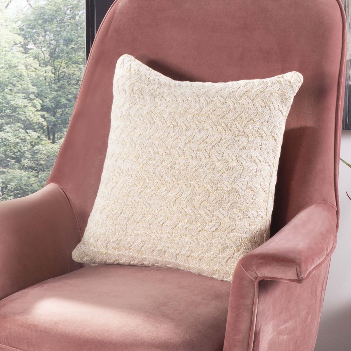 Spark instant happiness and joy with this chic and luxurious Safavieh Adara Knit Pillow. A golden disco ball on a favorite chair or a glittering star on the sofa, its radiant and daring blend of natural and gold glistens when its dazzling soft threads capture rays of light. Its comforting, gentle cotton means never sacrificing substance for style.