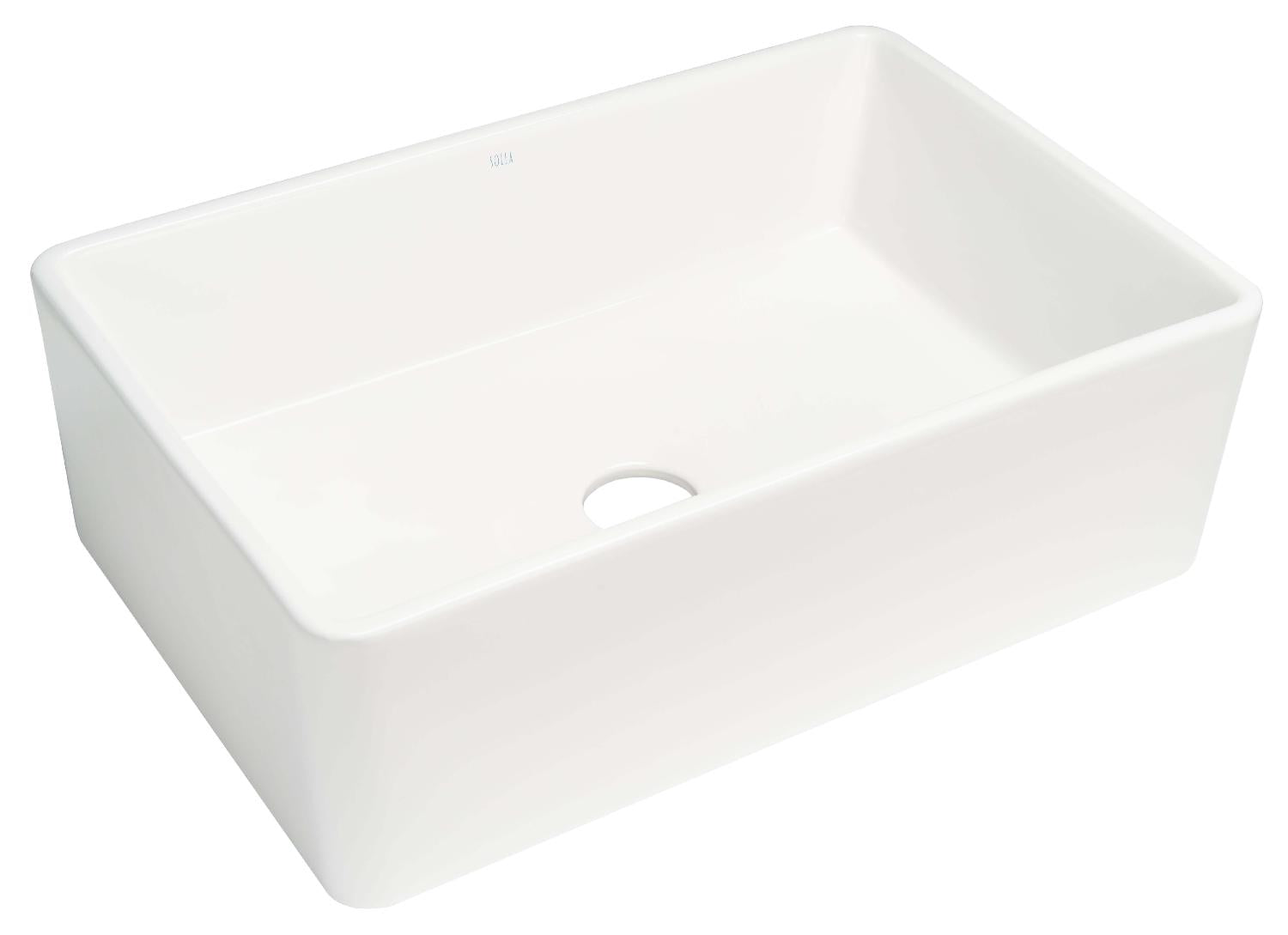 Perfectly styled to suit any kitchen d?cor, the Farmhouse Kitchen Sink is balanced and sophisticated in its unassuming form. Crafted of smooth white porcelain ceramic, its 30 inch rectangular shape makes dishwashing a breeze.