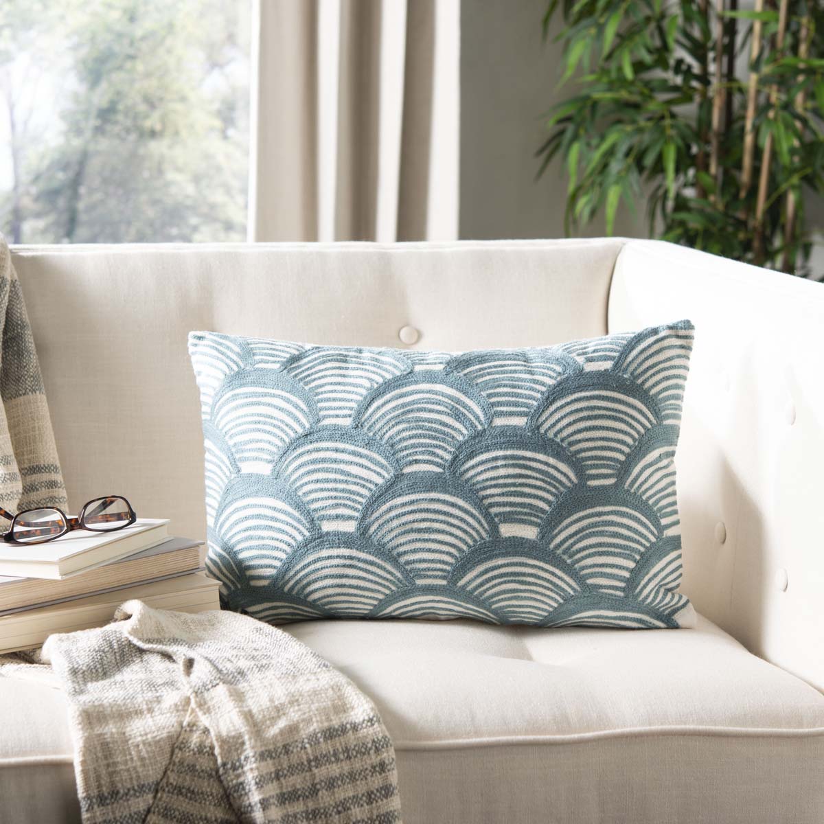 A contemporary, fresh spin on Art Deco style, the elegant Safavieh Milla Pillow infuses modern luxury and beauty into any room with its gentle, flowing pattern. Designed to complement any interior, its serene beige pattern moves across its chic blue cover to elevate any sofa or chair.,A contemporary, fresh spin on Art Deco style, the elegant Safavieh Milla Pillow infuses modern luxury and beauty into any room with its gentle, flowing pattern. Designed to complement any interior, its serene beige pattern moves across its chic blue cover to elevate any sofa or chair.