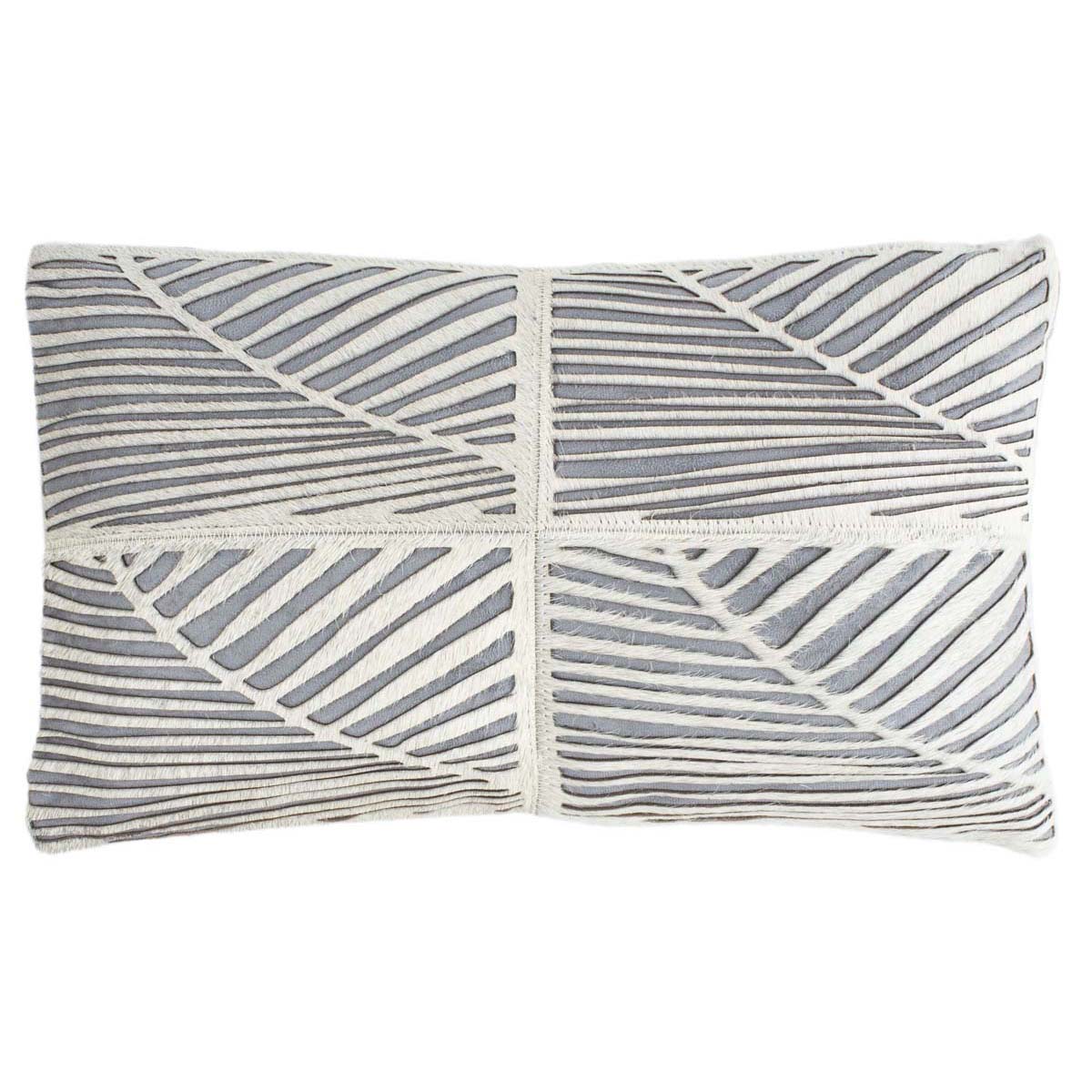 This fashion chic Palm Cowhide Pillow displays high touch texture and a leafy frond design, with the contrast of white and grey tones accentuating the dimensional look of the stenciled natural cowhide. A suede back with a hidden zipper makes for easy access care in this distinctive throw pillow for contemporary living rooms, family rooms or master suites.,This fashion chic Palm Cowhide Pillow displays high touch texture and a leafy frond design, with the contrast of white and grey tones accentuating the dimensional look of the stenciled natural cowhide. A suede back with a hidden zipper makes for easy access care in this distinctive throw pillow for contemporary living rooms, family rooms or master suites.
