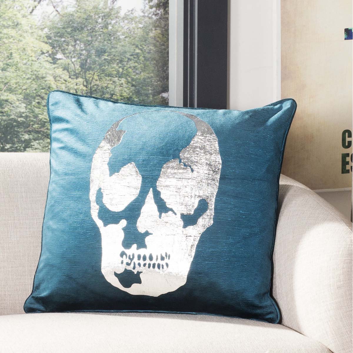 Audacious, fashion forward and resonating with punk rock decor style, this striking Romey Throw Pillow puts rock??n??roll energy into room decor. Showcasing a shining silver skull over a rich turquoise cover, this daring accent accessory carries an electric vibe to any modish sofa, bench or teen?? bedroom decor. Made with a handy zipper on back for no fuss care and cleaning.