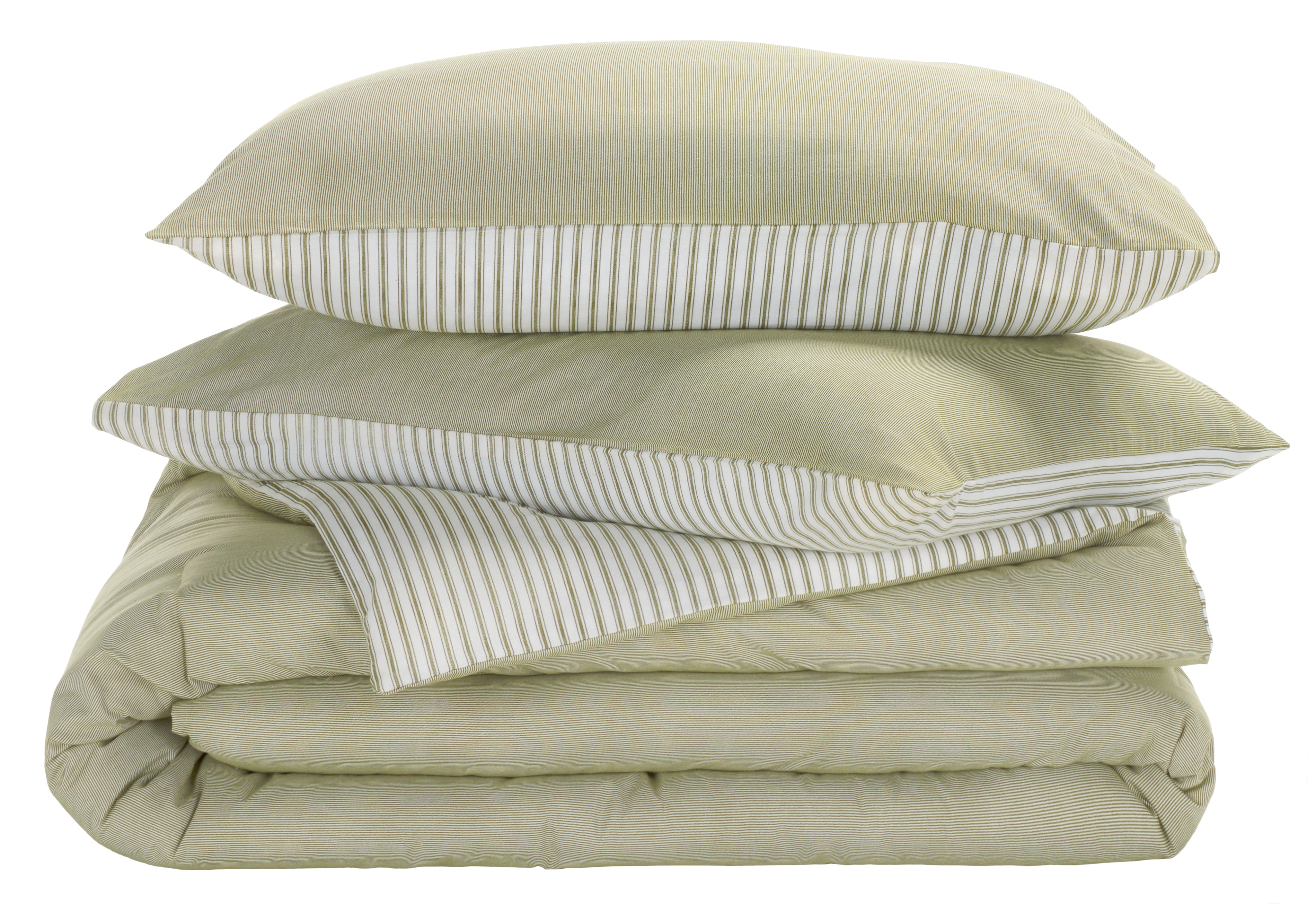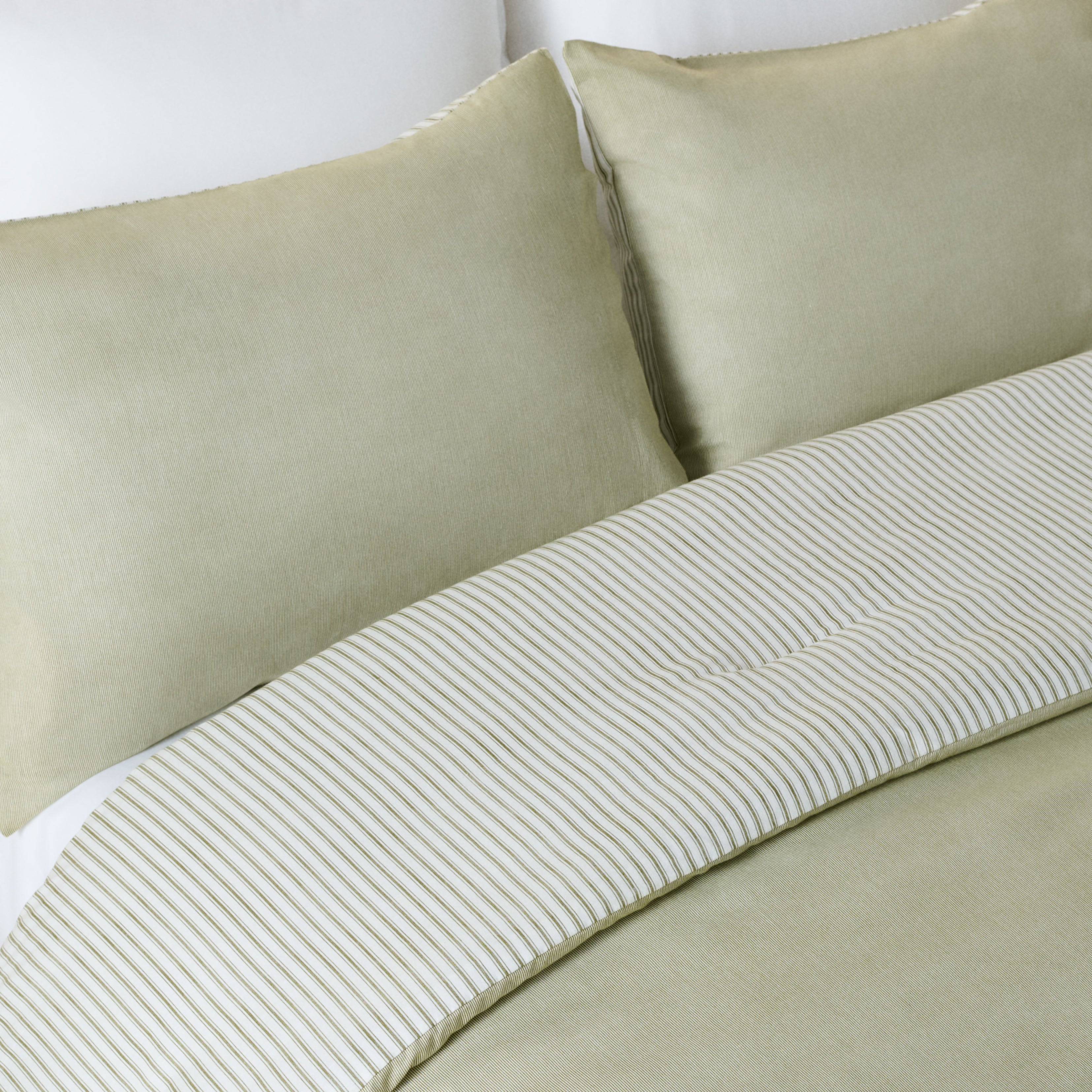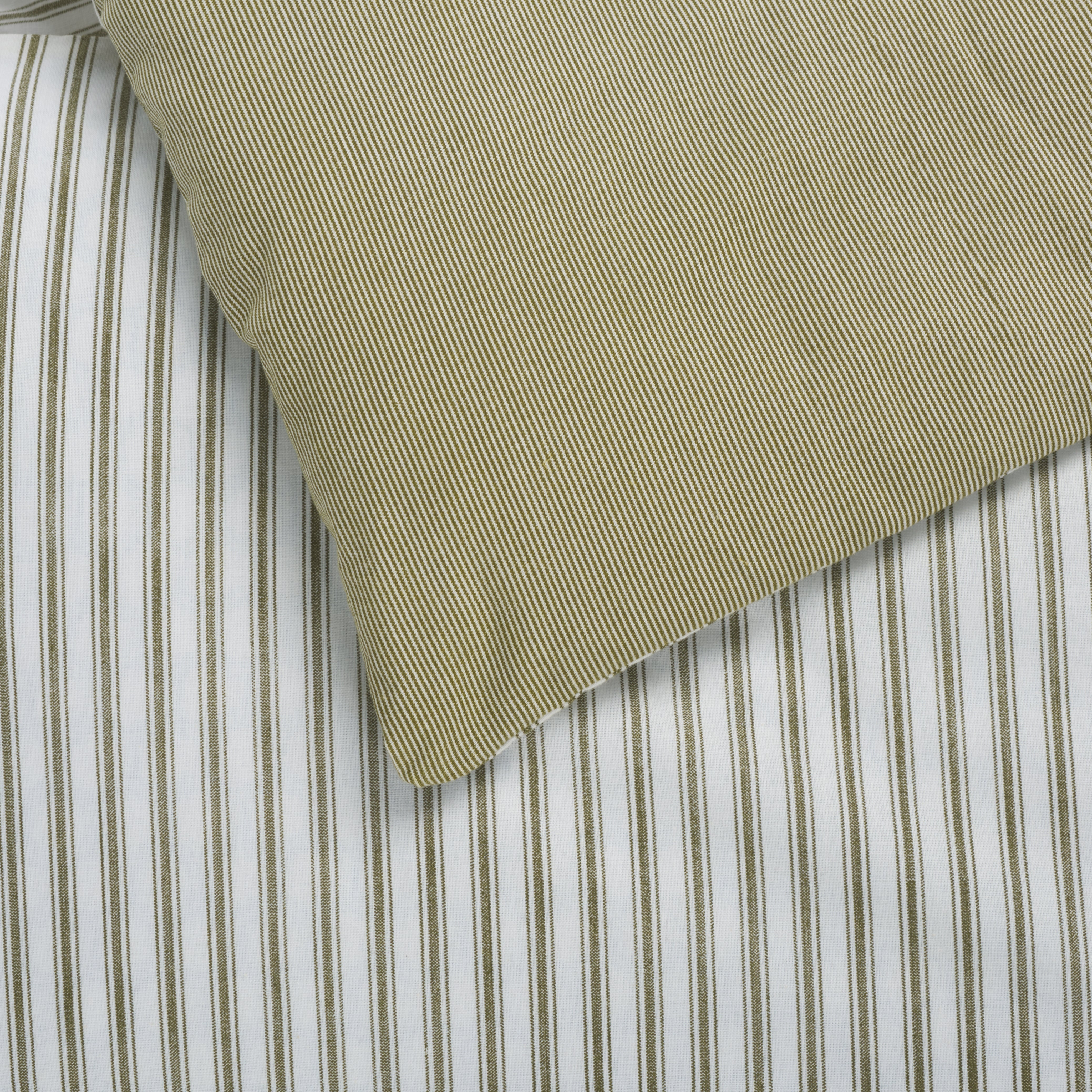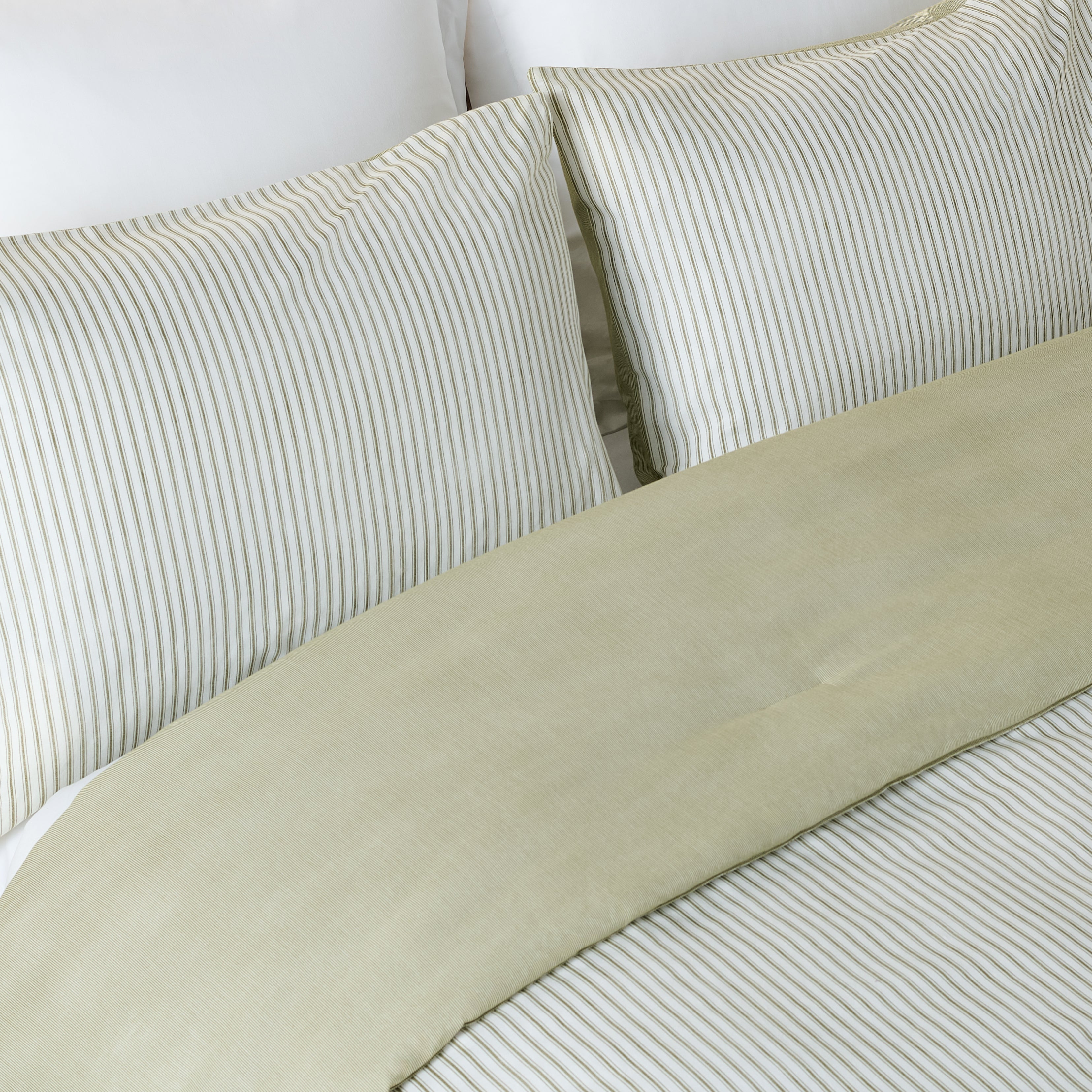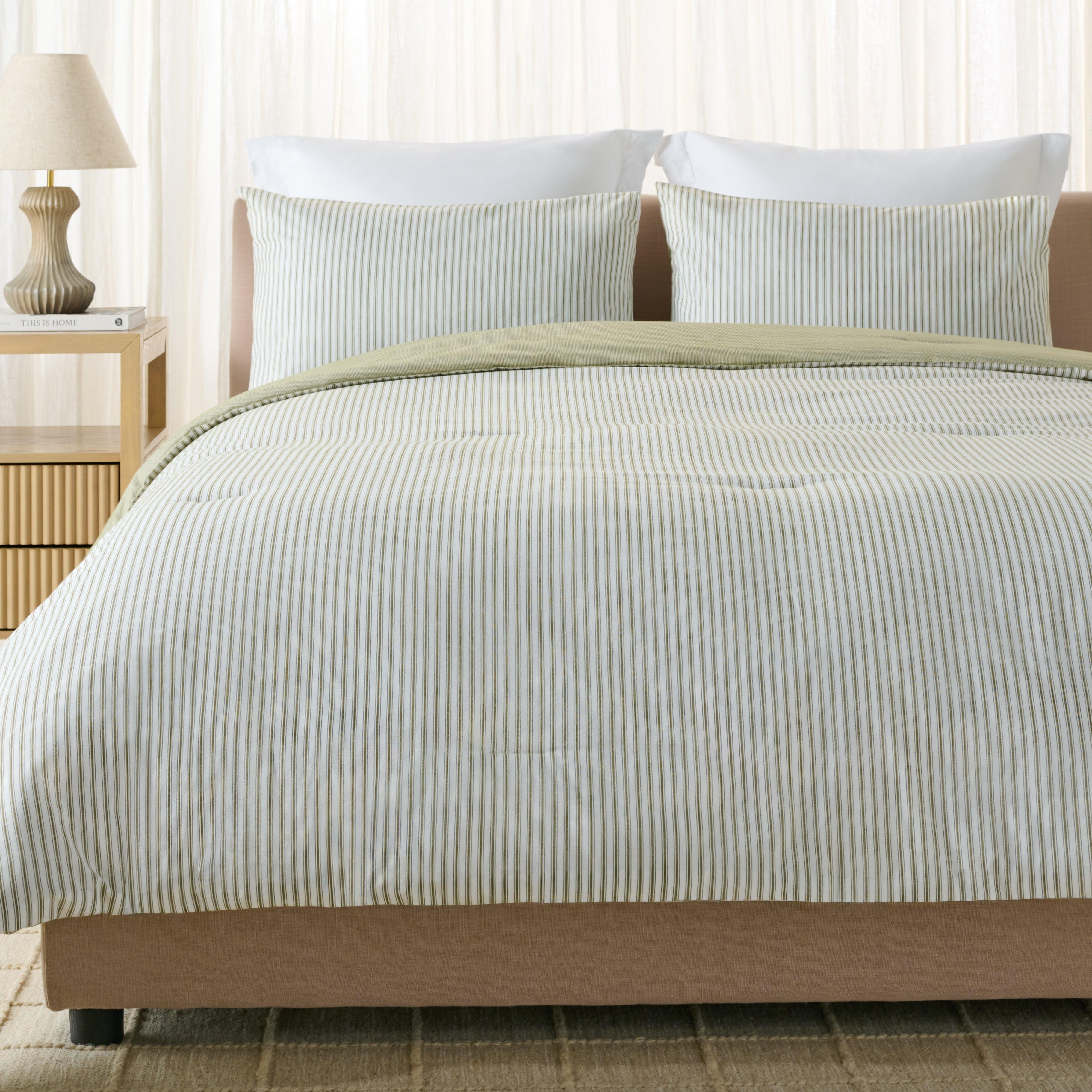 Transform your bedroom into a sanctuary of comfort with the Stripe Reversible Comforter Set. This set is crafted from 100% cotton with a 144-thread count, offering a soft, breathable touch. The reversible stripe design brings a refreshing change whenever desired, showcasing a unique yarn-dyed effect with a refined woven look.