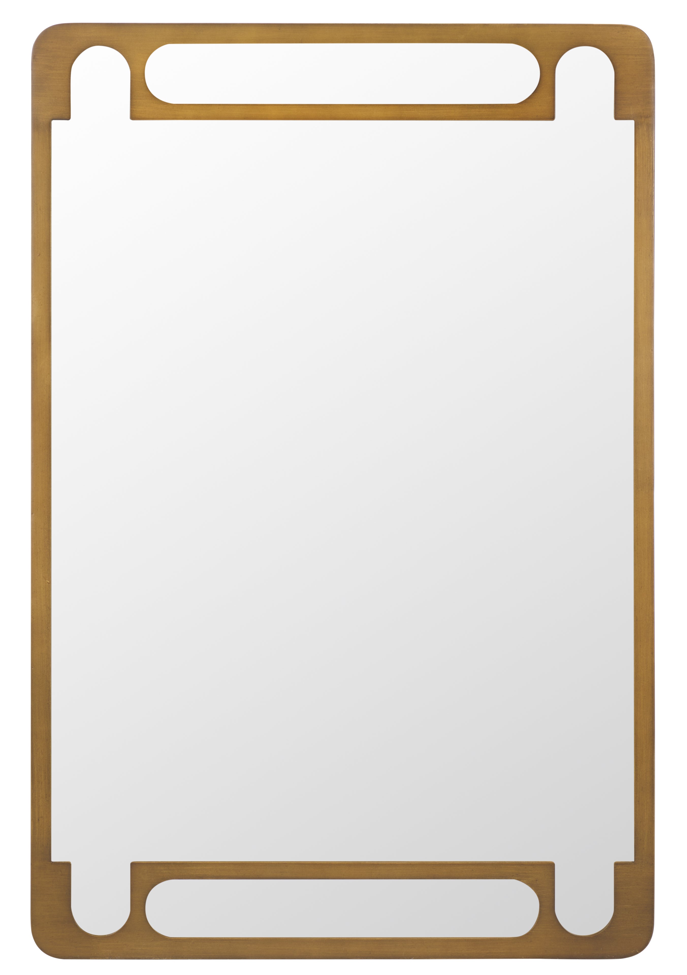 Made from mirror, MDF, and iron, the Tilia features a unique rectangular cutout design that adds a touch of modern deco charm. Its rich antique gold hue creates an inviting atmosphere, blending classic allure with contemporary appeal.