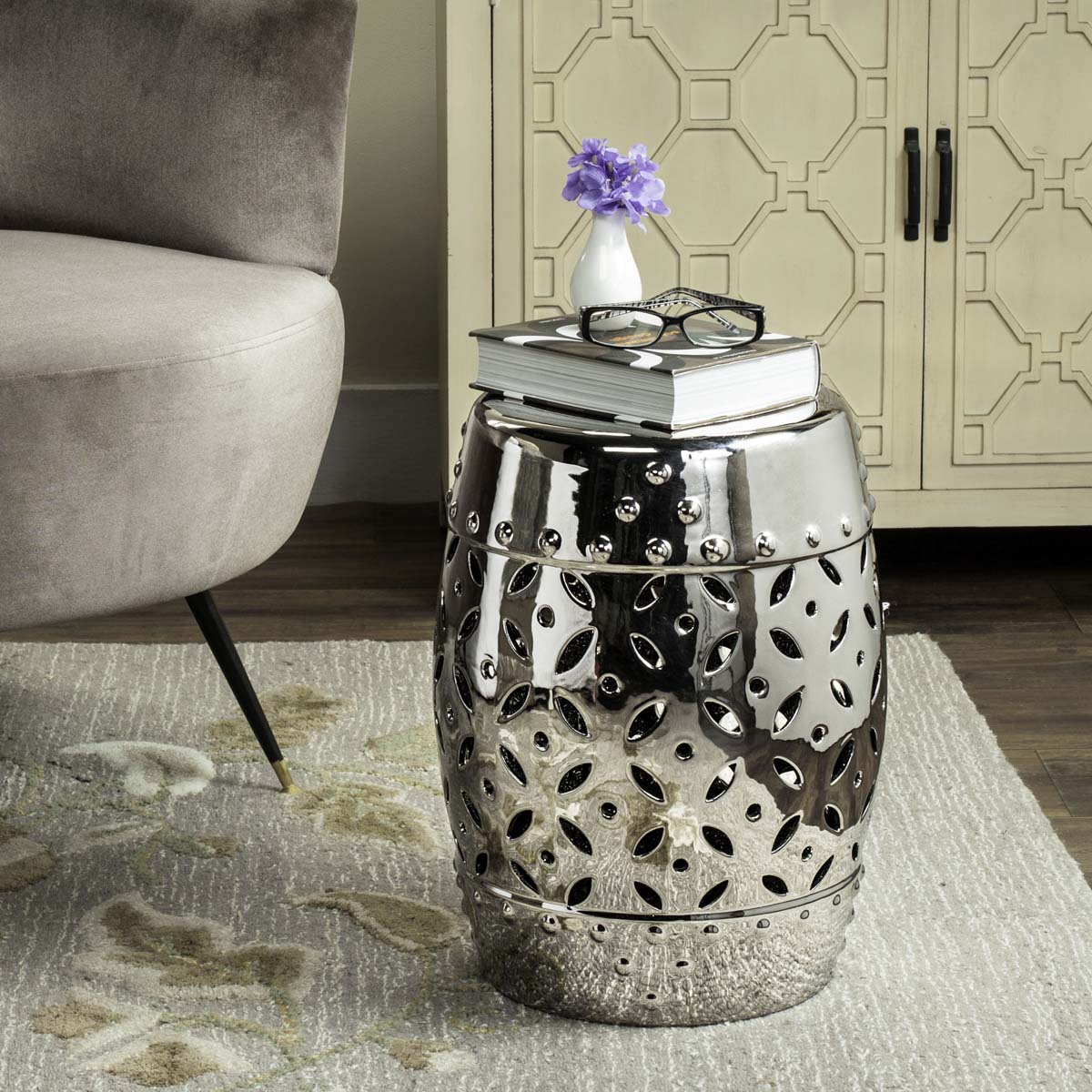Silver Lattice Coin Garden Stool | Safavieh - ACS4510