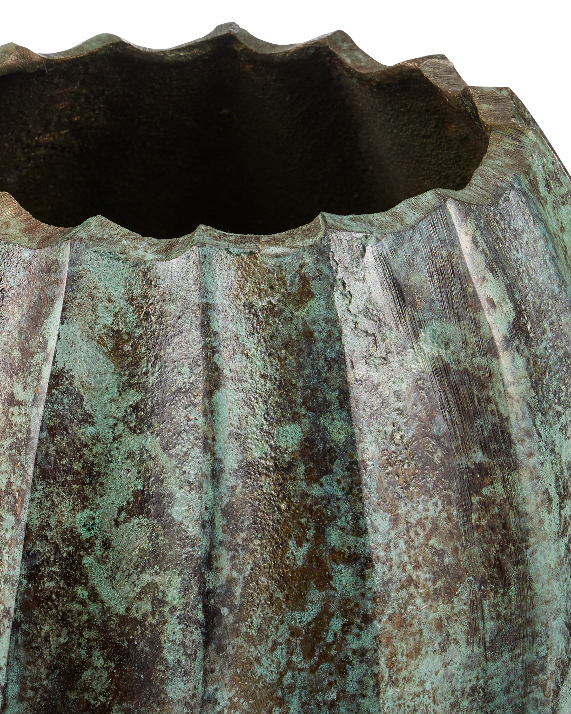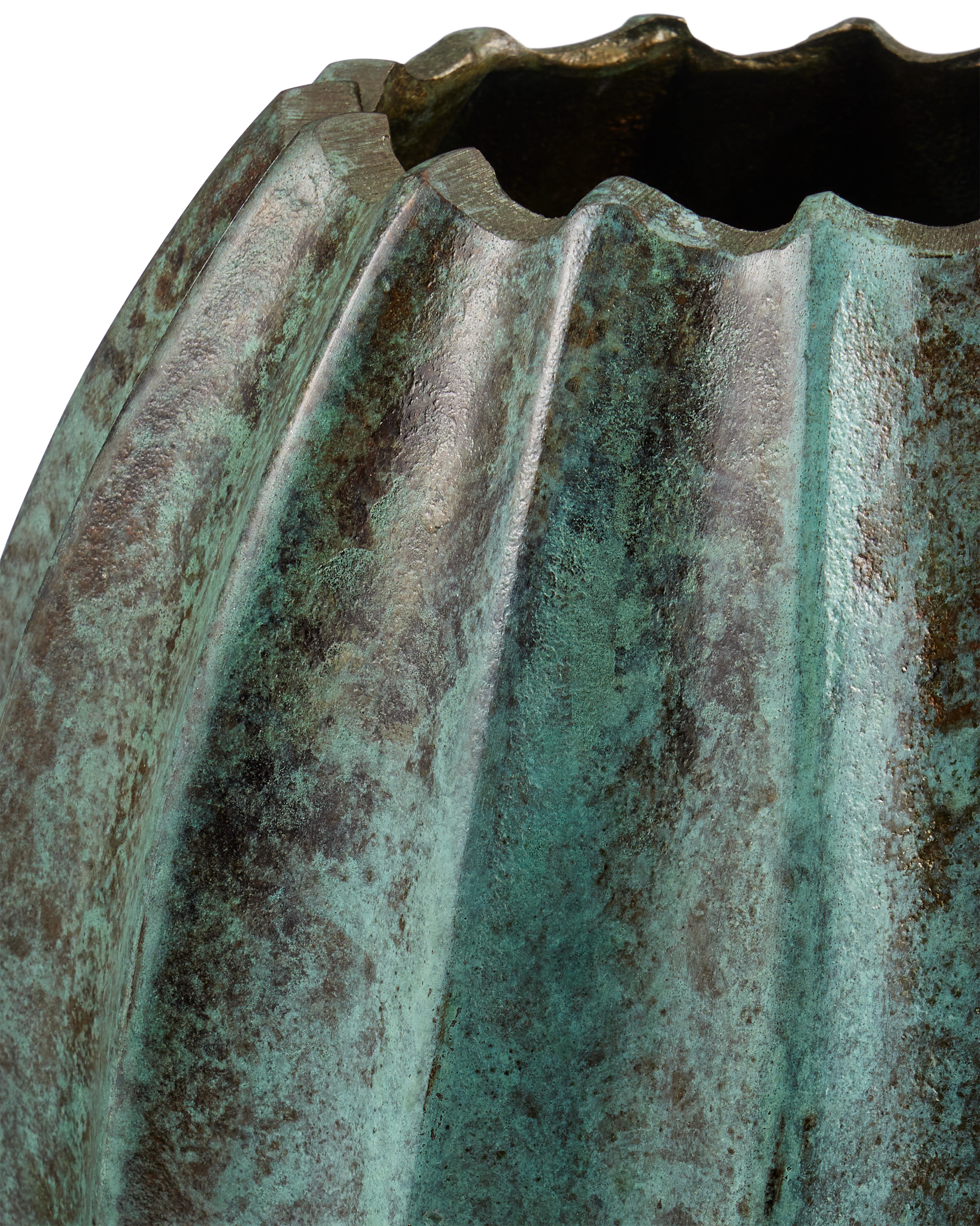 The Utrecht Object Set includes two vessels with organic profiles made of cast aluminum that have surfaces covered in an incredible raw patina. Once these vases are pulled from the mold, they are oxidized to make them look naturally aged like fine antiques.