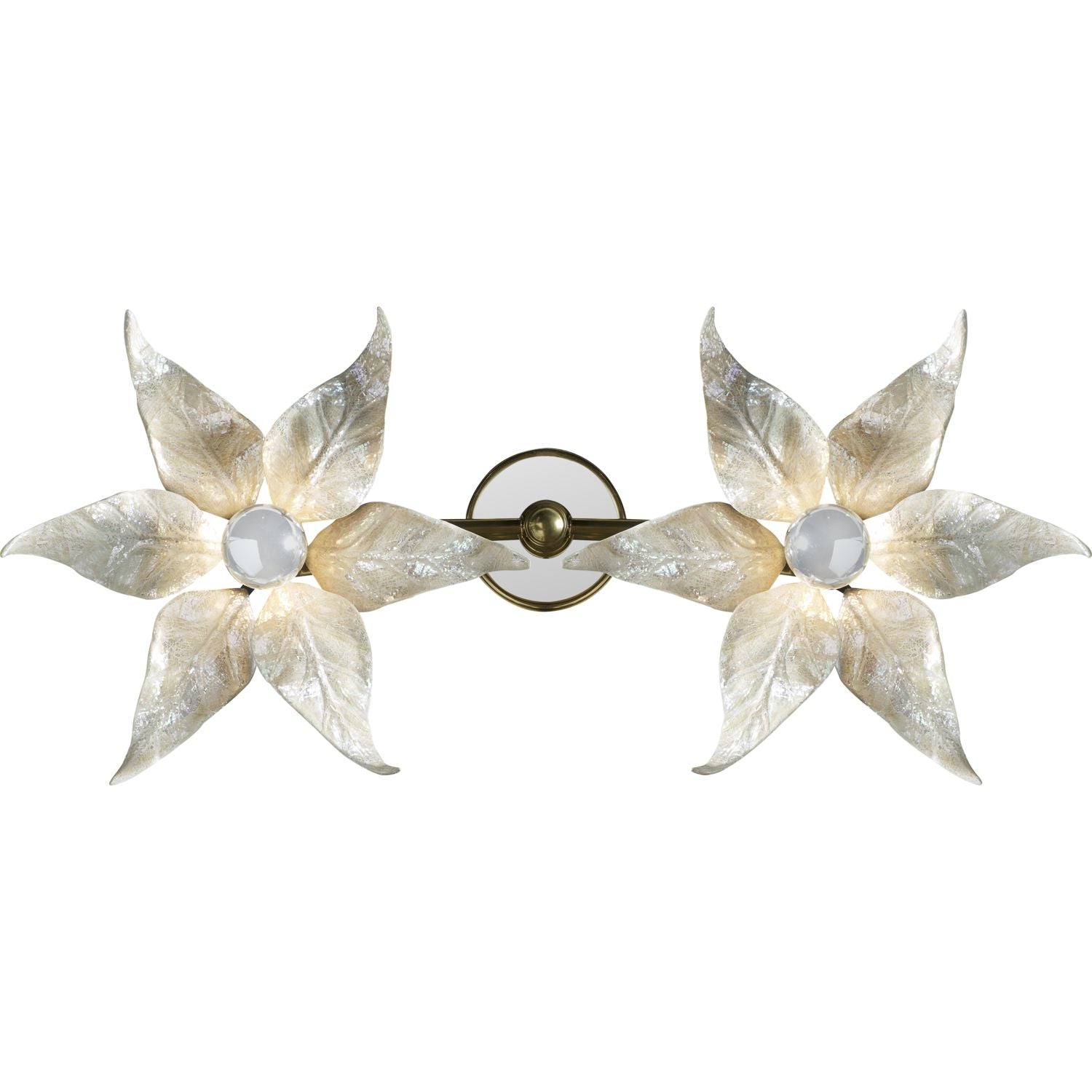 White Oyster Shell Inlaid Wall Sconce, Floral Decor, Soft Brass and Glass Accents