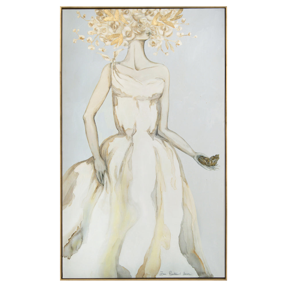 This stunning figural representation in charcoal and gold tones by Zana Brown is an incredible work of art. The piece features a hand-painted gold molding.