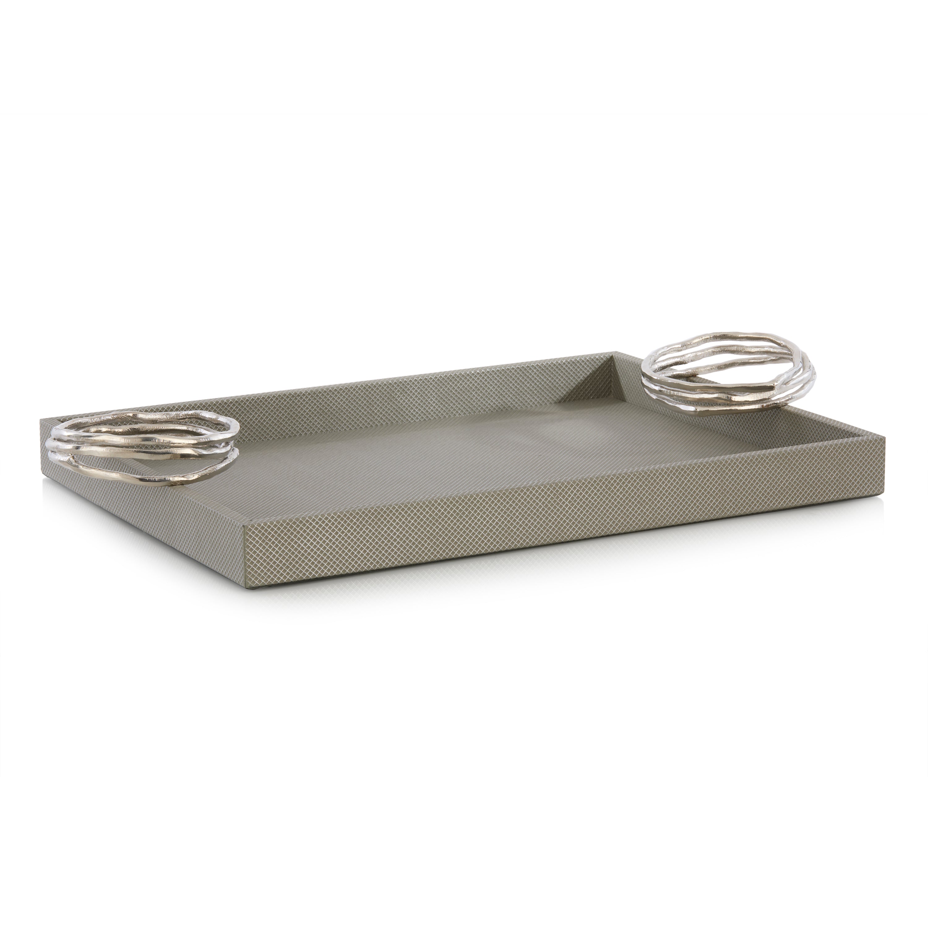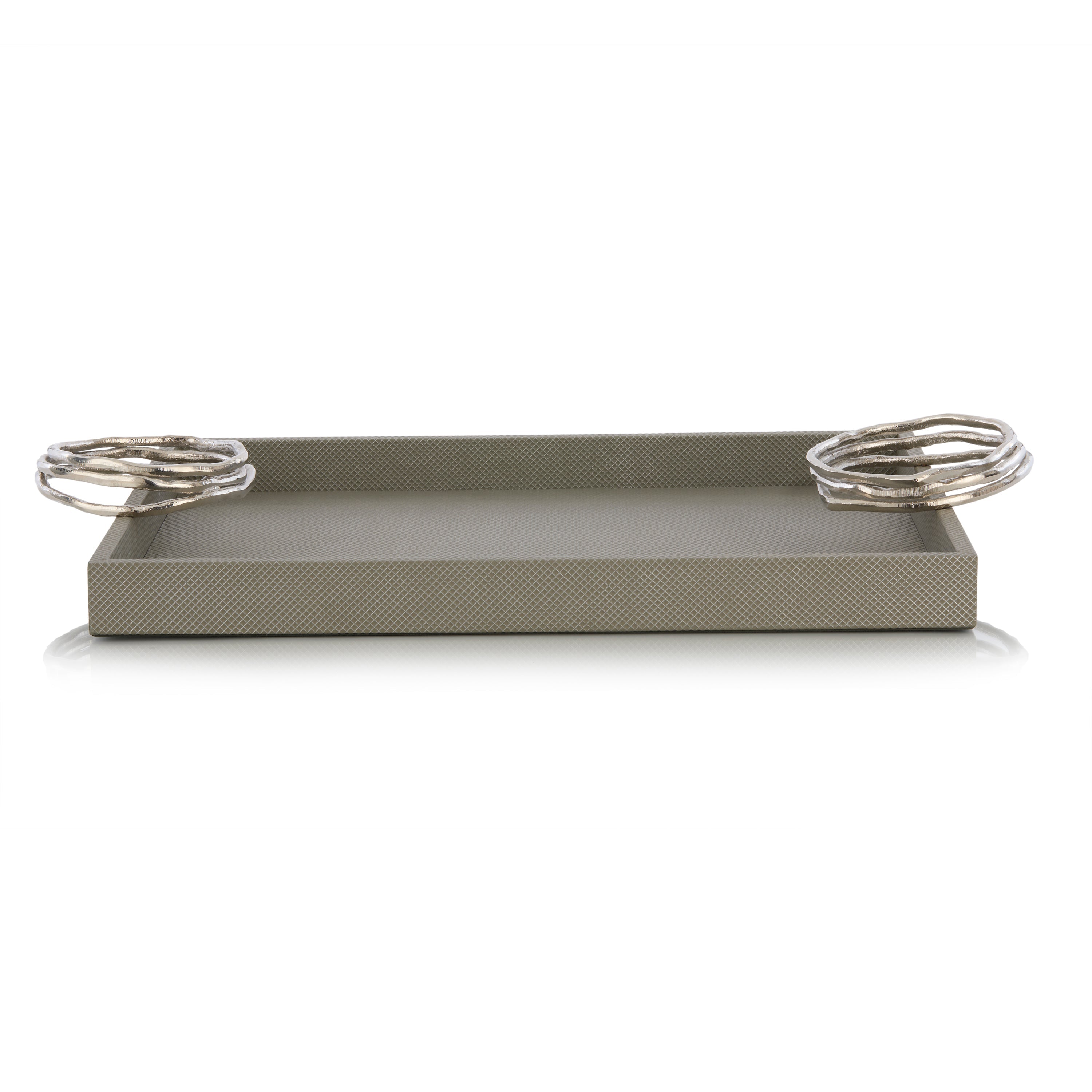 The Silver Coil Box is an elegant decorative vessel that captures playful dimension and refined opulence. It features a textured gray surface, adorned by two coiled aluminum handles in a sleek Nickel finish.