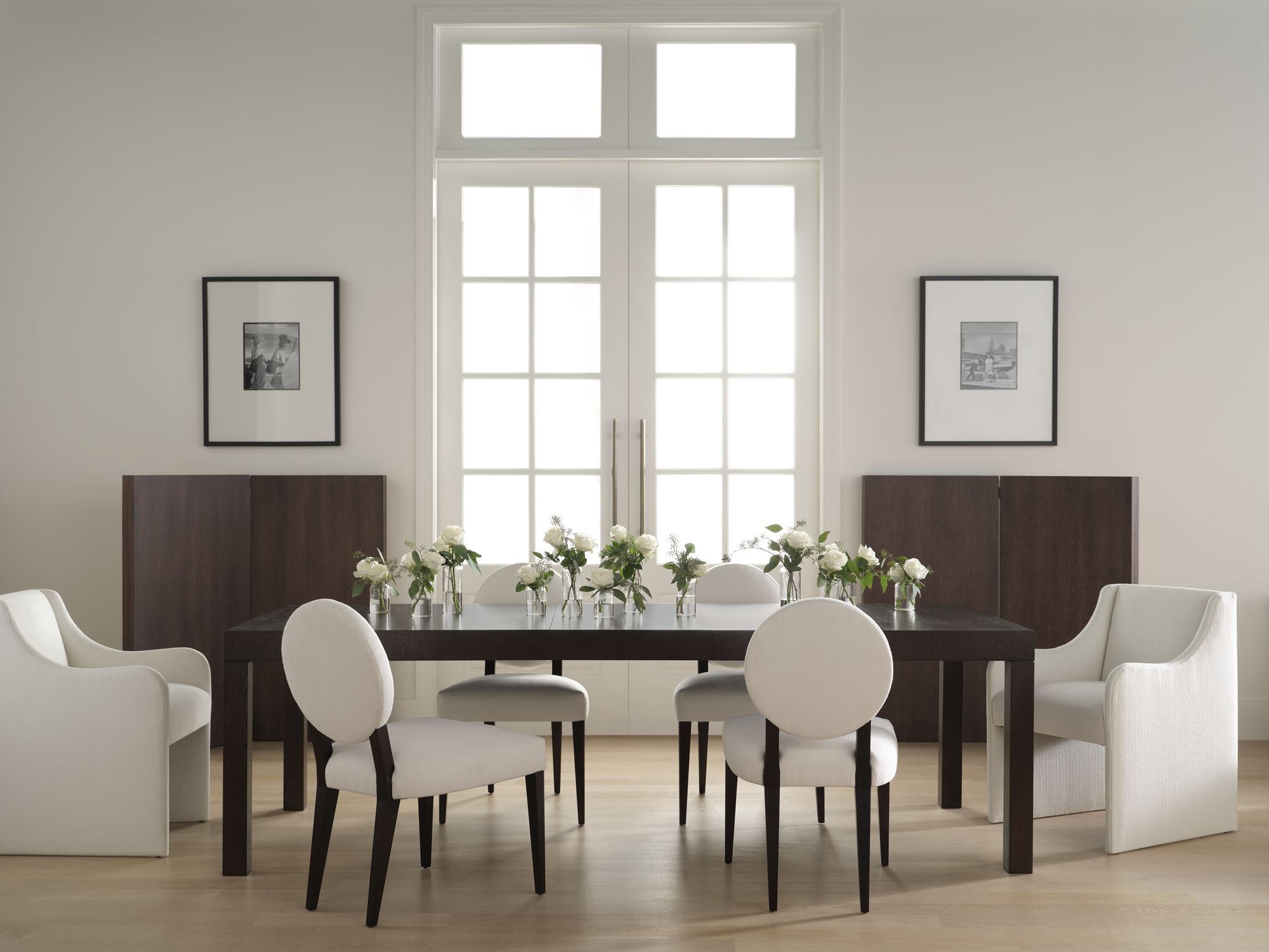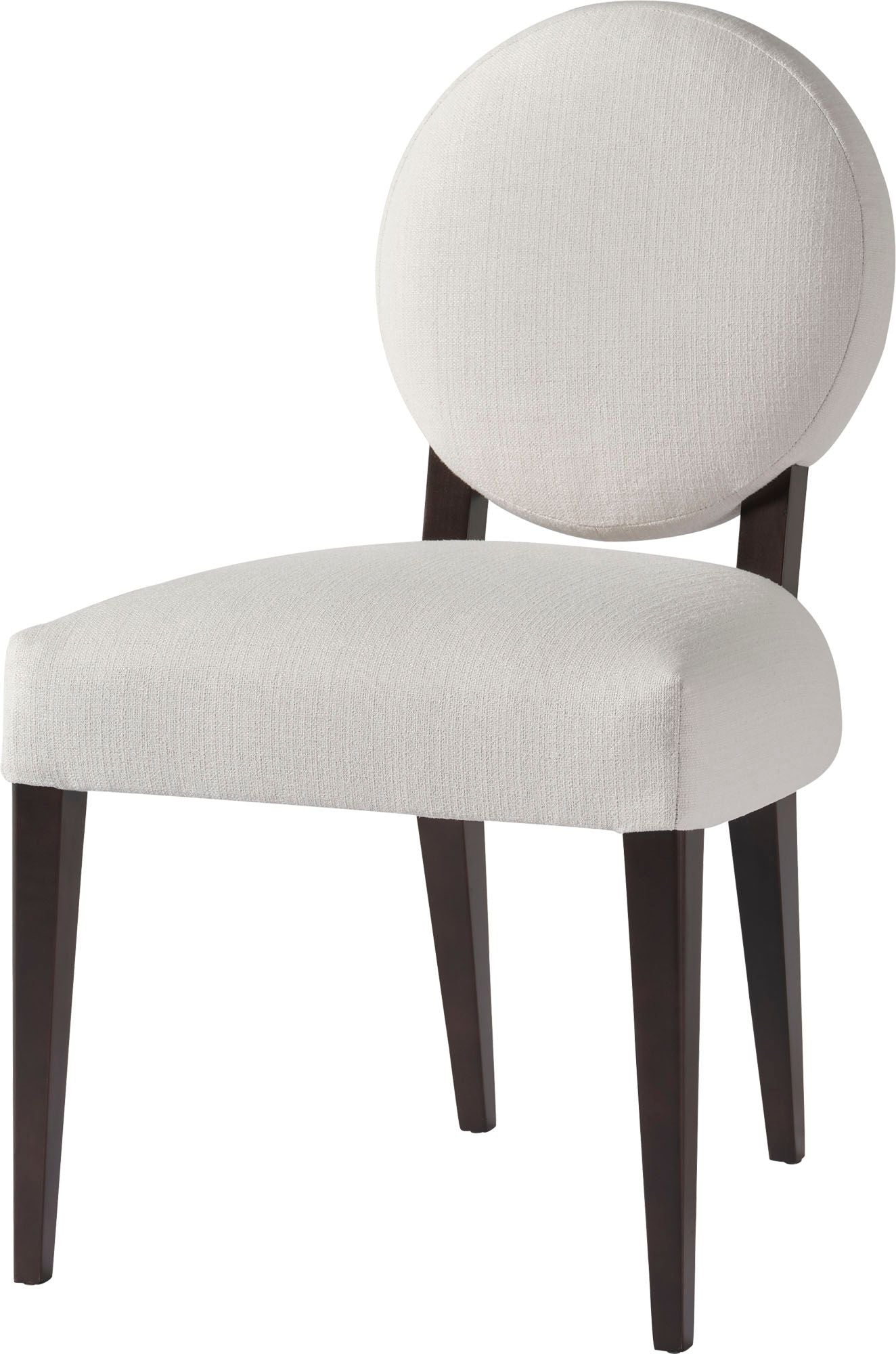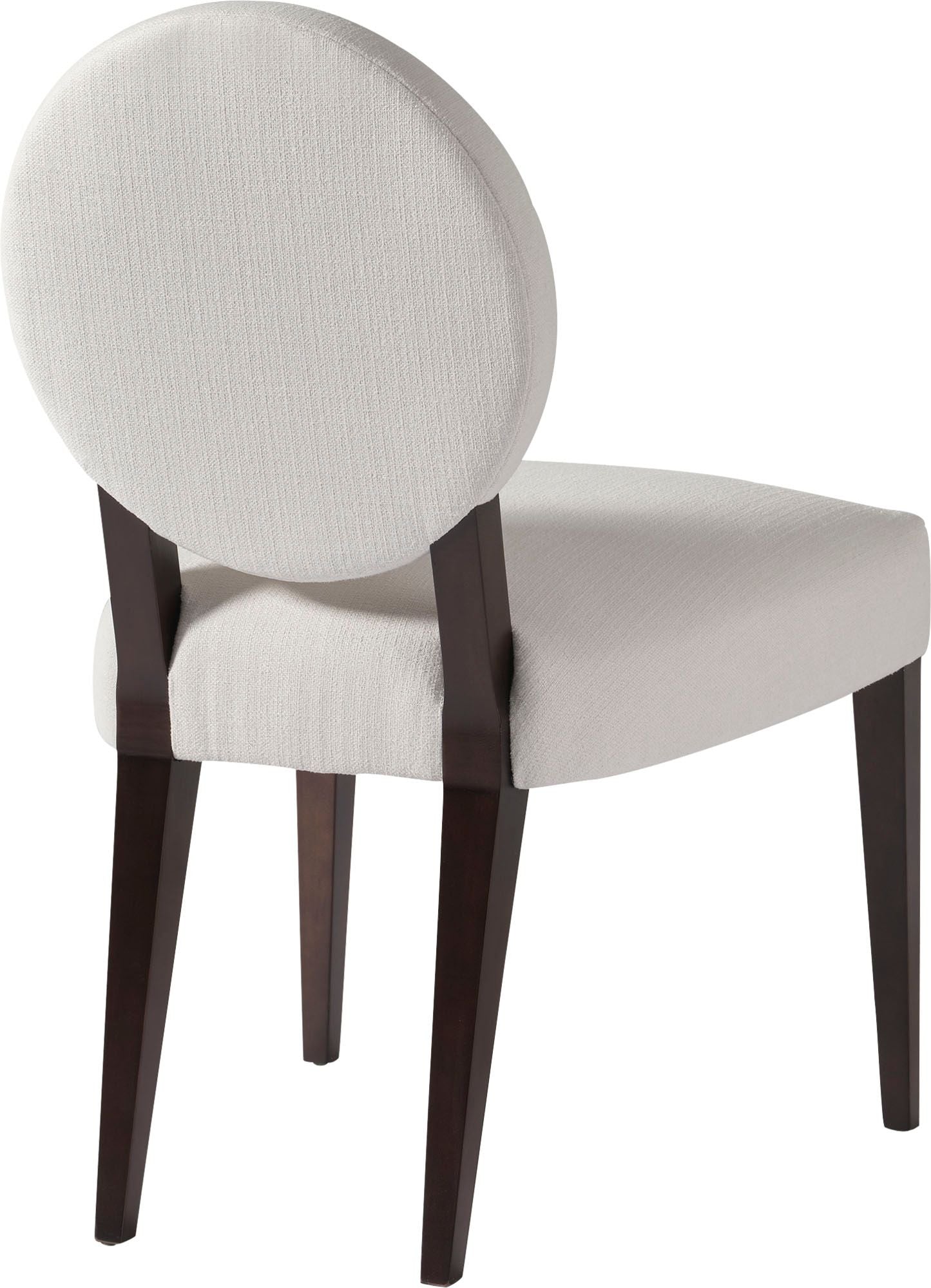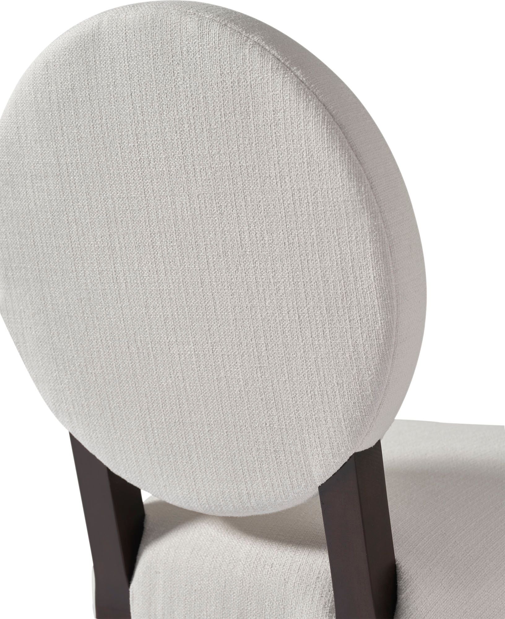The Ashby Chair is a modernized take on a traditional, round-back chair, with the legs passing through the seat to give the back a floating appearance. This piece is fully upholstered for a comfortable, luxurious experience that lasts.