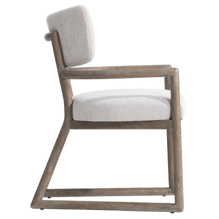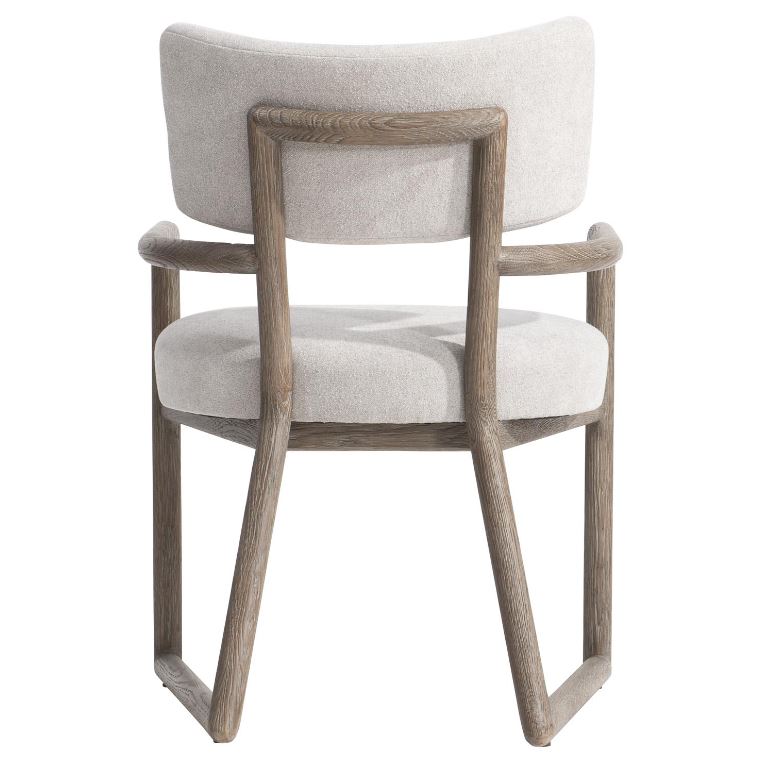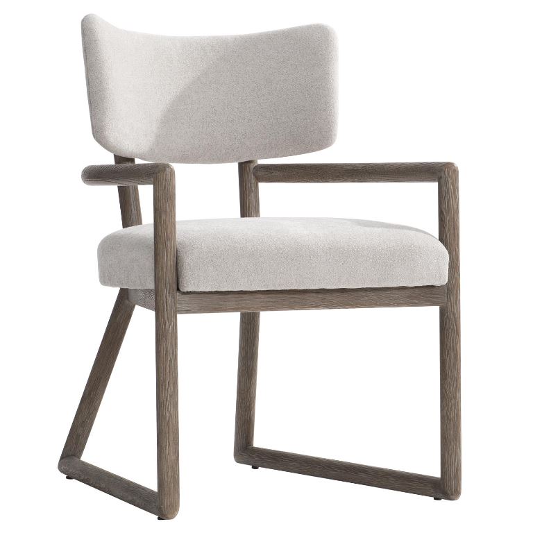 Bold shaping creates a mesmerizing geometric design for the Casa Paros arm chair. The exposed wood frame in Playa finish supports a softly curved, upholstered floating back and seat. The chair has a refined, pared-down aesthetic.