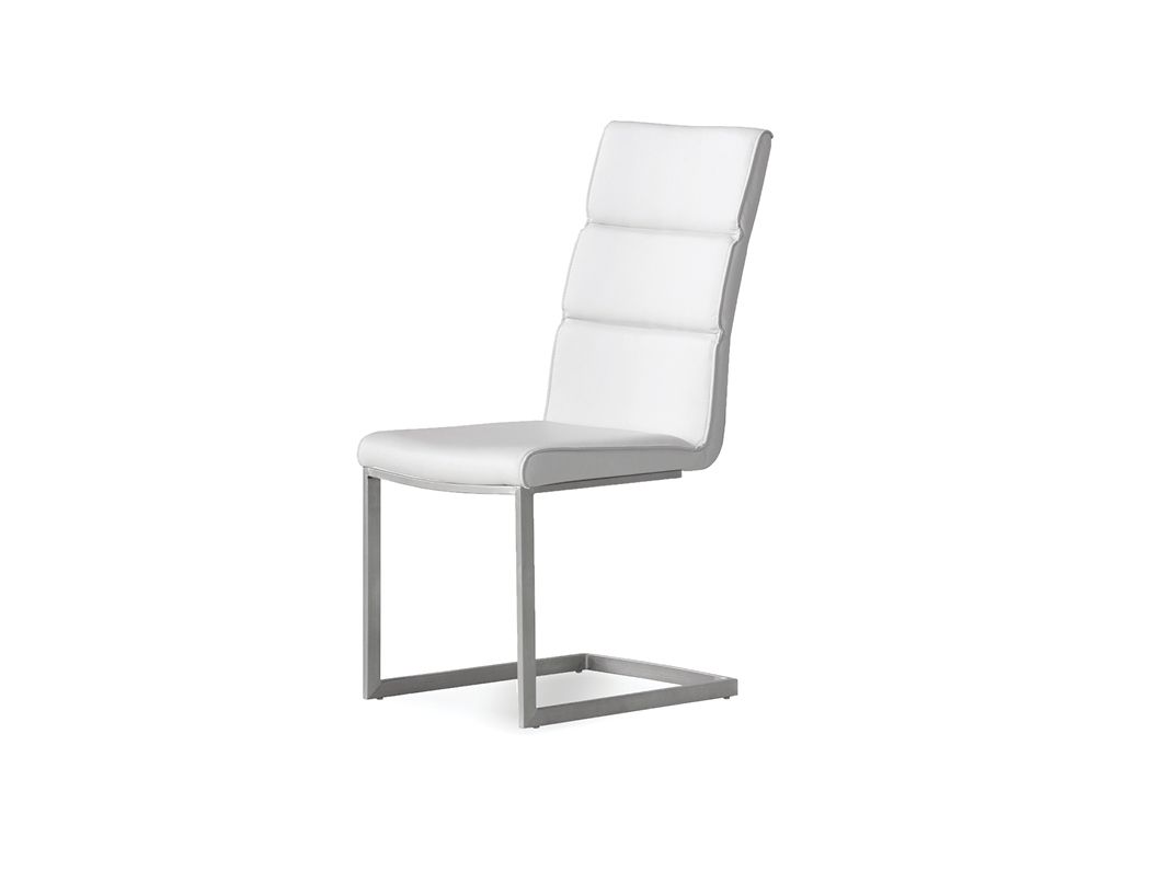 DUOMO Dining Chair White Leatherette Brushed legs | Mobital - DCH-DUOM-WHIT-
