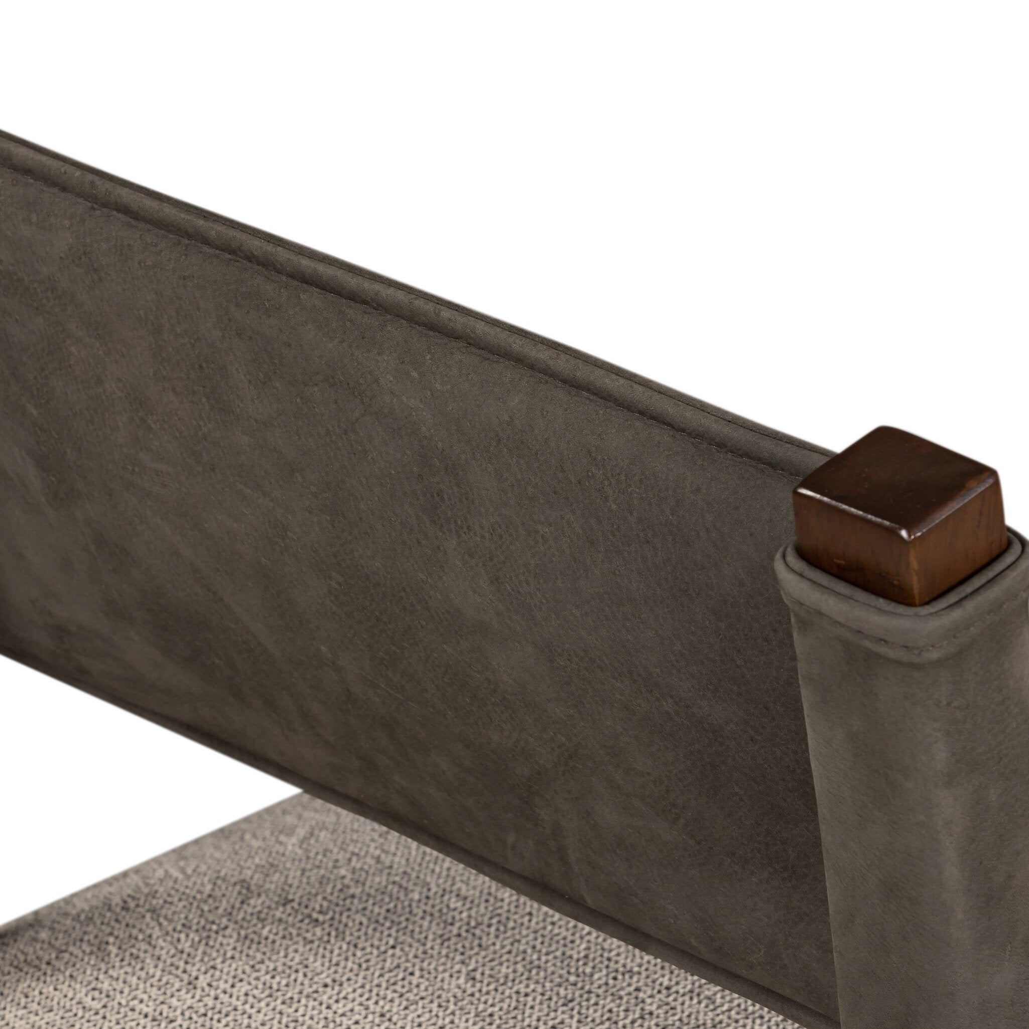 Mixed materials at their finest. Brown parawood forms a slight, simple frame for squared seating of neutral performance-grade upholstery. Charcoal top-grain leather backing takes this modern-minded dining chair to the next level.
