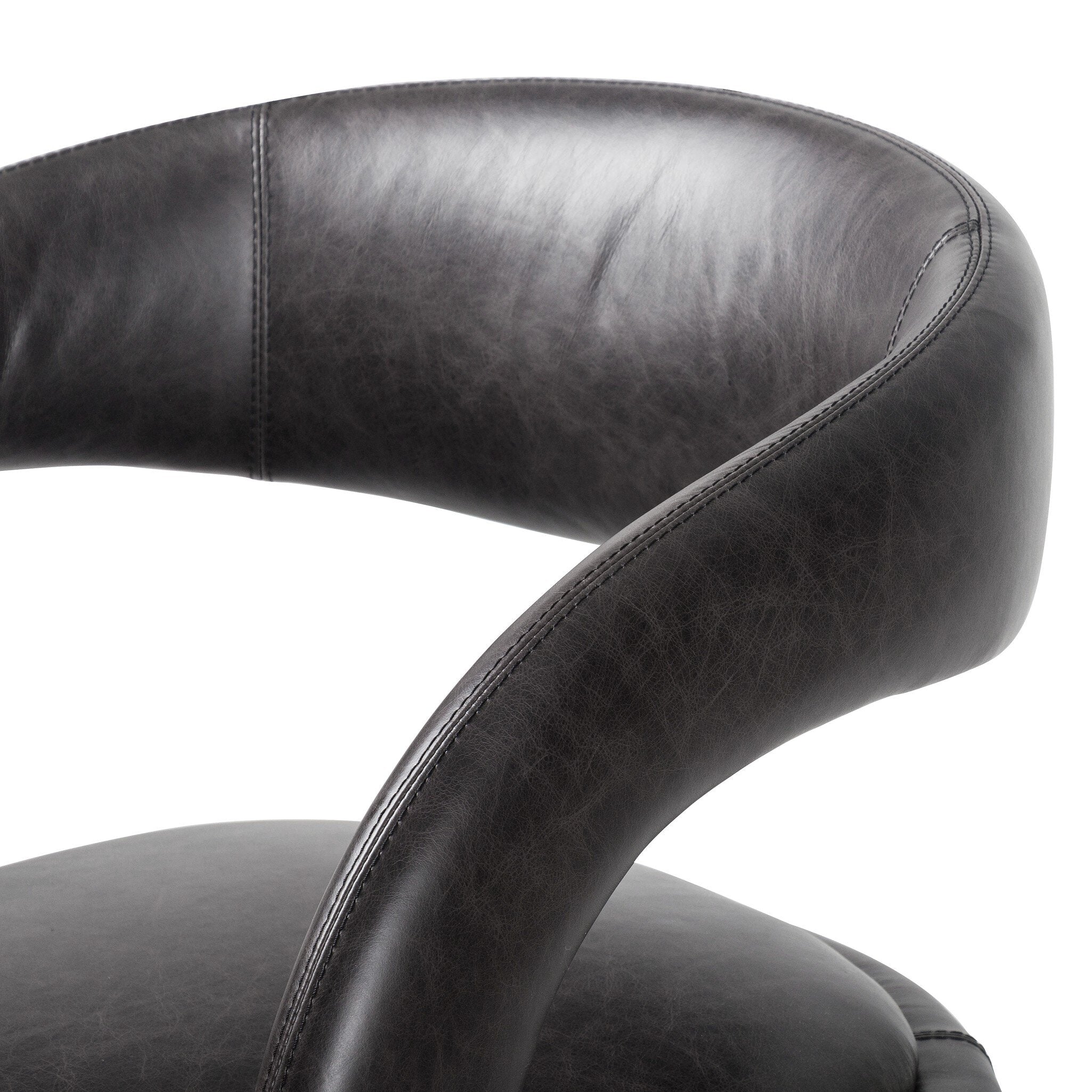 Strike a pose. Well curved and finely sculpted, black top-grain leather exclusive to Four Hands makes for a unique and shapely addition to the modern dining room.