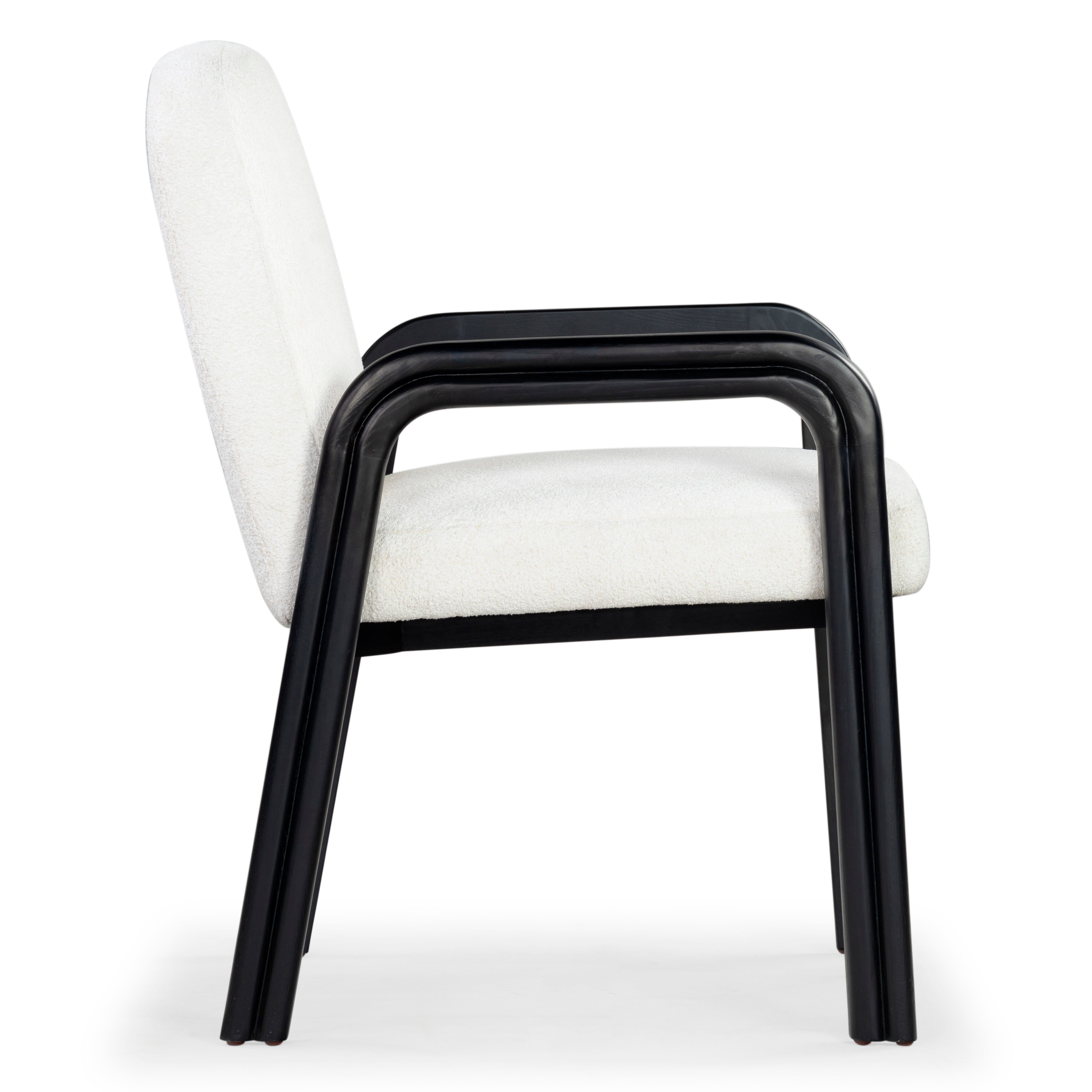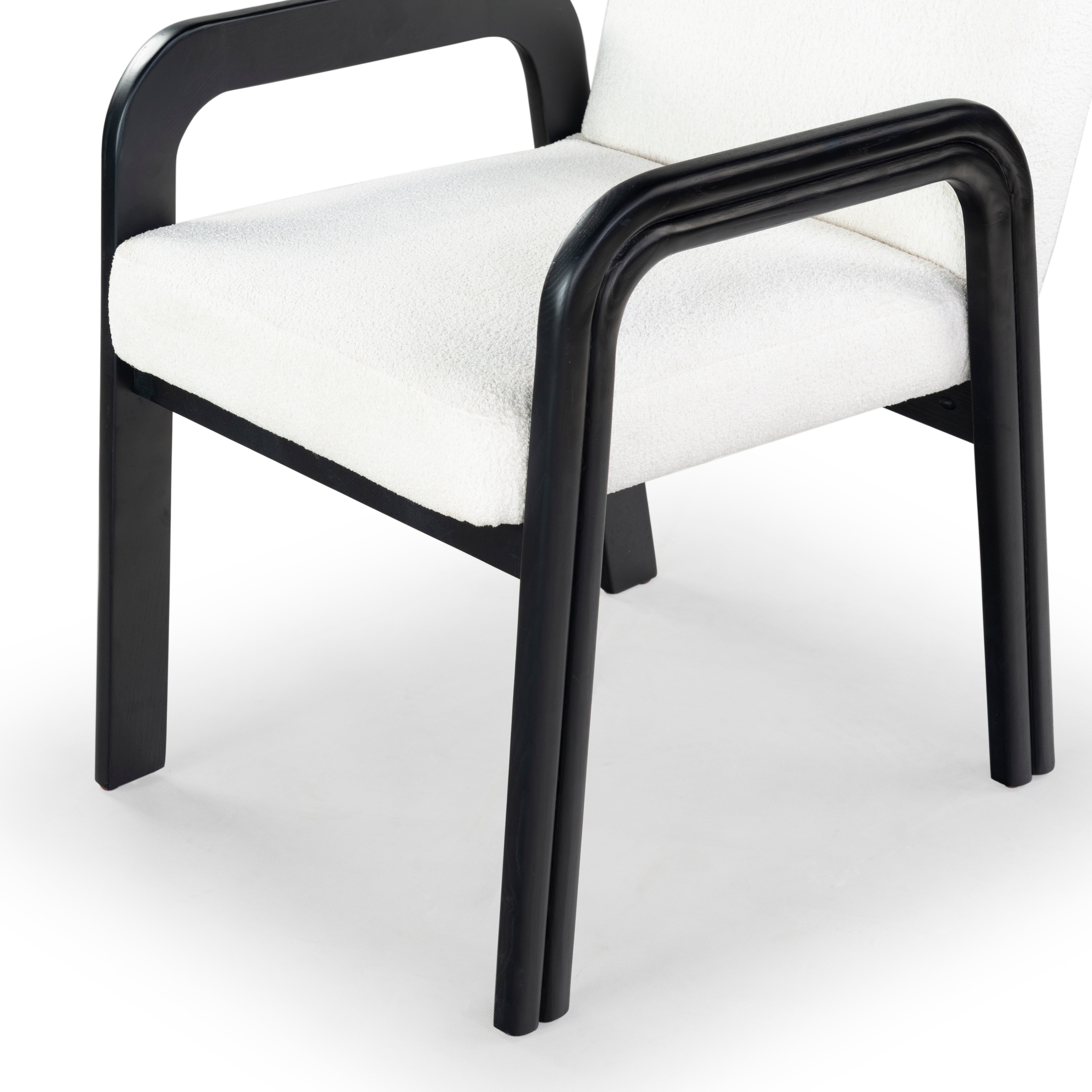 In the Roslina Boucle Dining Chair, we offer something more than mere furniture- it's a statement of style, a testament to superior craftsmanship, and a promise of ultimate dining comfort. This dining chair isn't just designed for your household- It's designed for you.