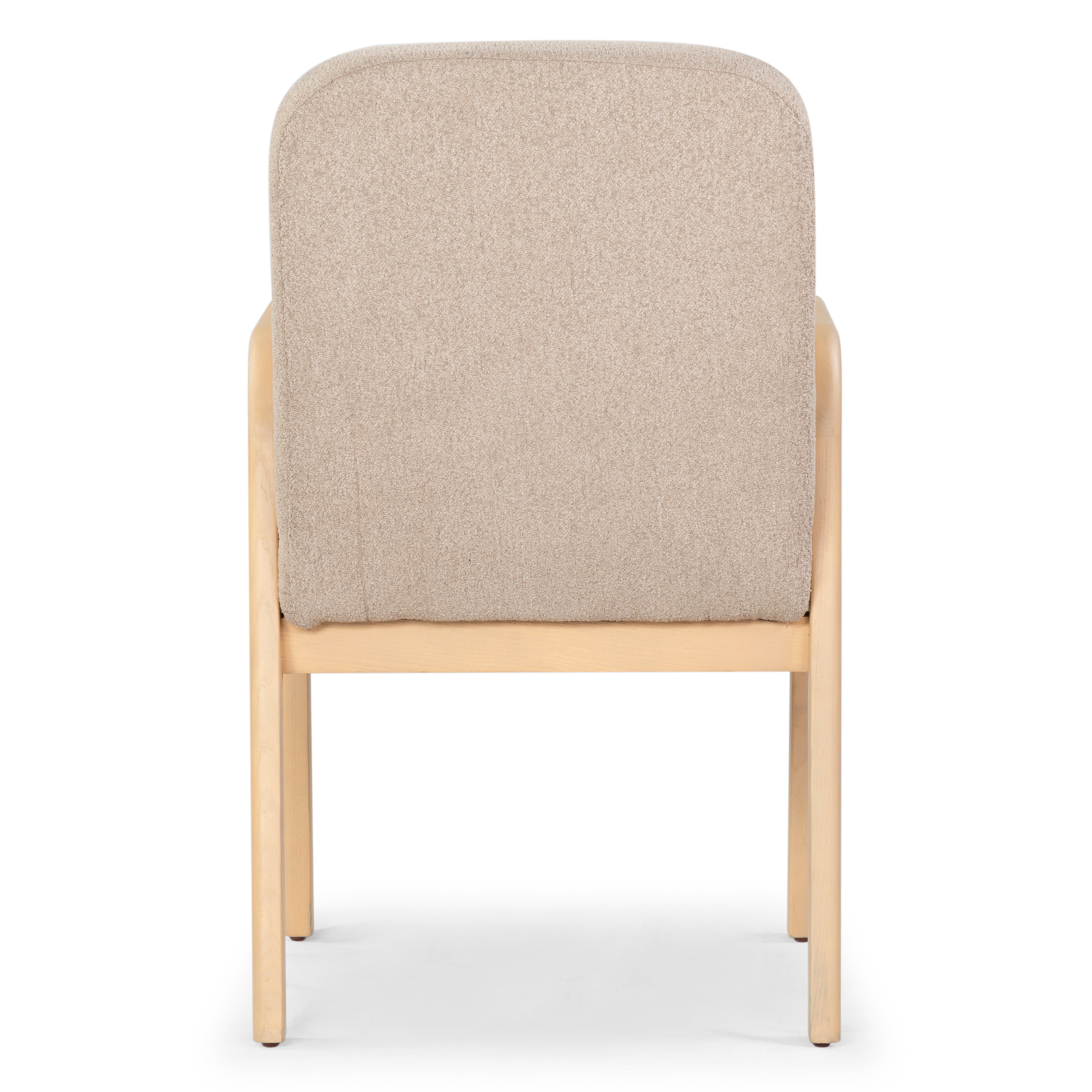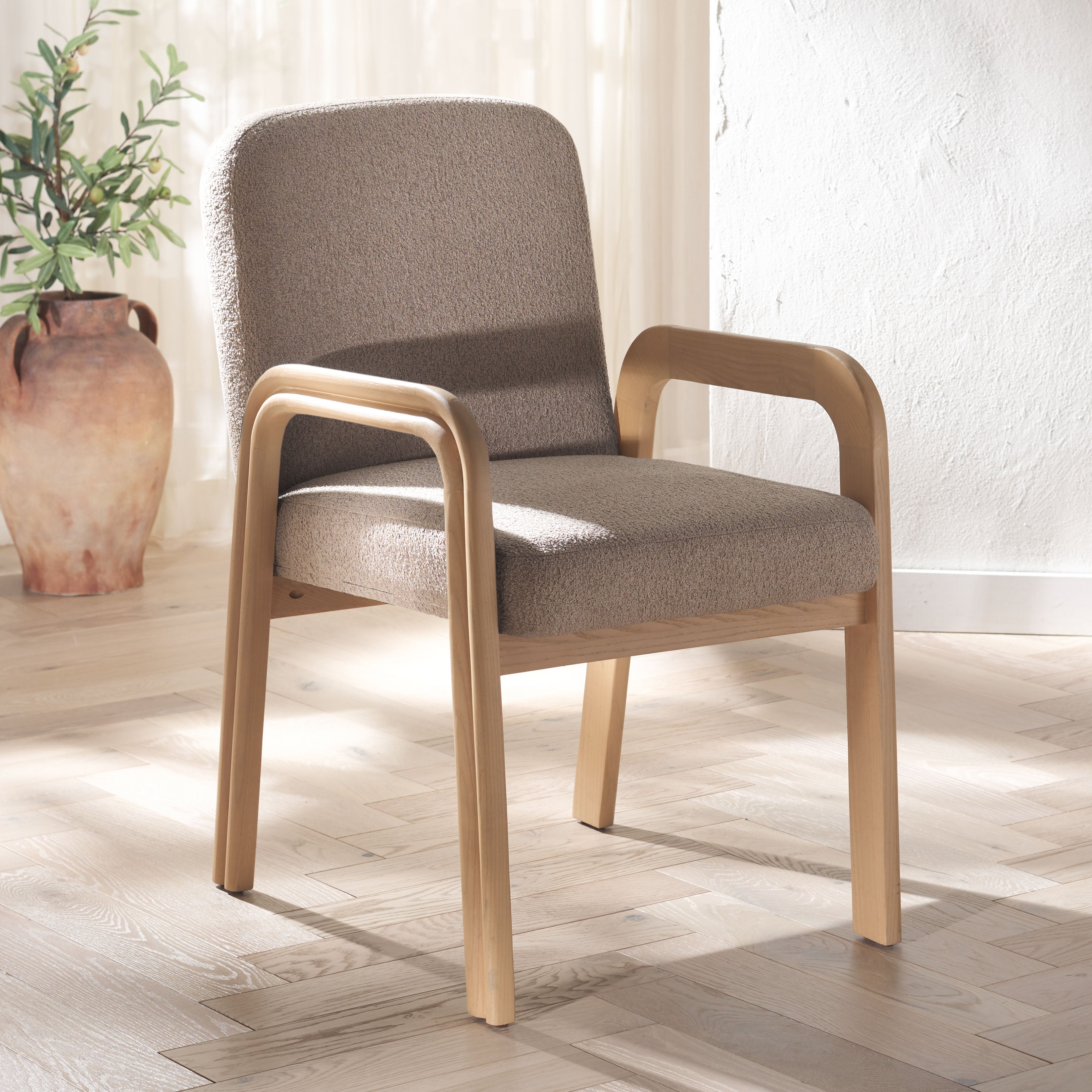 Crafted from high-quality Acacia and Ash woods, the Roslina Boucle Dining Chair offers durable yet captivating charm with its Light Brown / Natural hues. It promises to add a touch of elegance to any setting, whether it's a cozy meal with the family or a sumptuous dinner with friends. Its exquisite wood construction ensures durability and stability, coupled with a sophisticated design that never goes out of style.