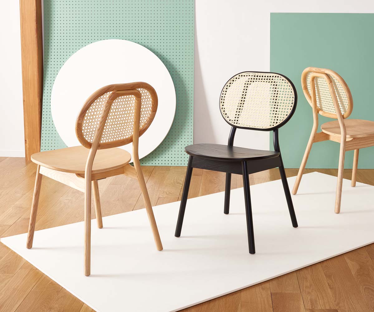 Enliven your dining area with the warmth and grace of our Kristianna dining chair. Blending elegant lines with graceful curves, our dining chair attains a bold and charming presence with its round elliptical back and seat. The back is warmed up with woven rattan to bring a dose of natural textures to your dining area. It is neatly framed within black finished solid ash wood to serve as a refreshing and charming addition to both your casual and formal dining space.
