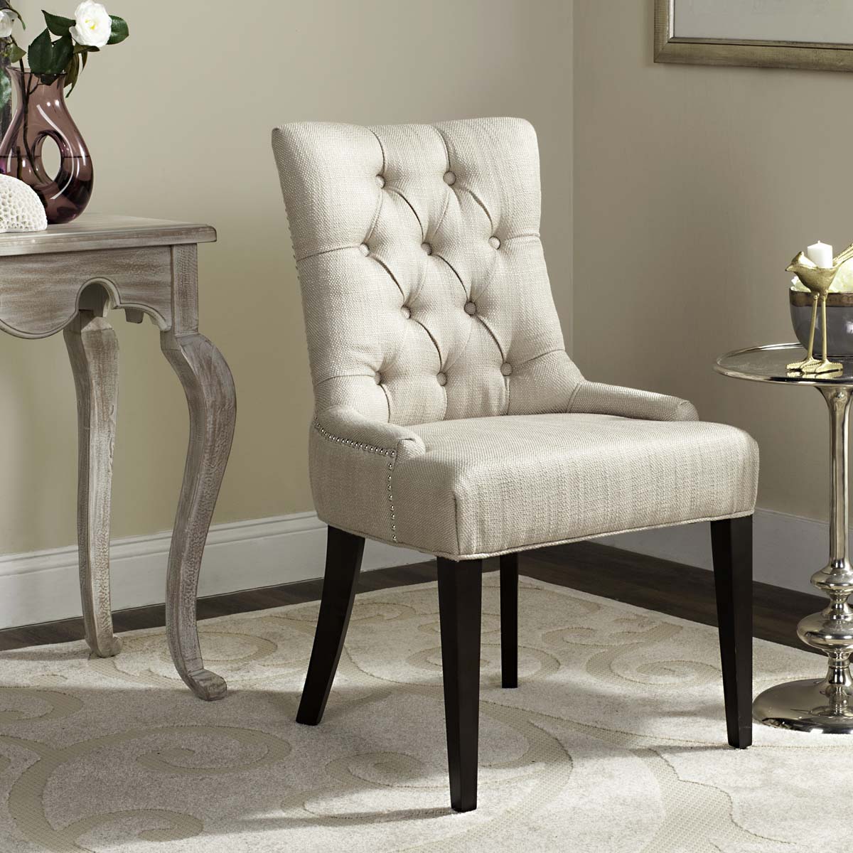 Safavieh Amanda 19''H Linen Tufted Chair Nickel Nail Heads - Antique Gold