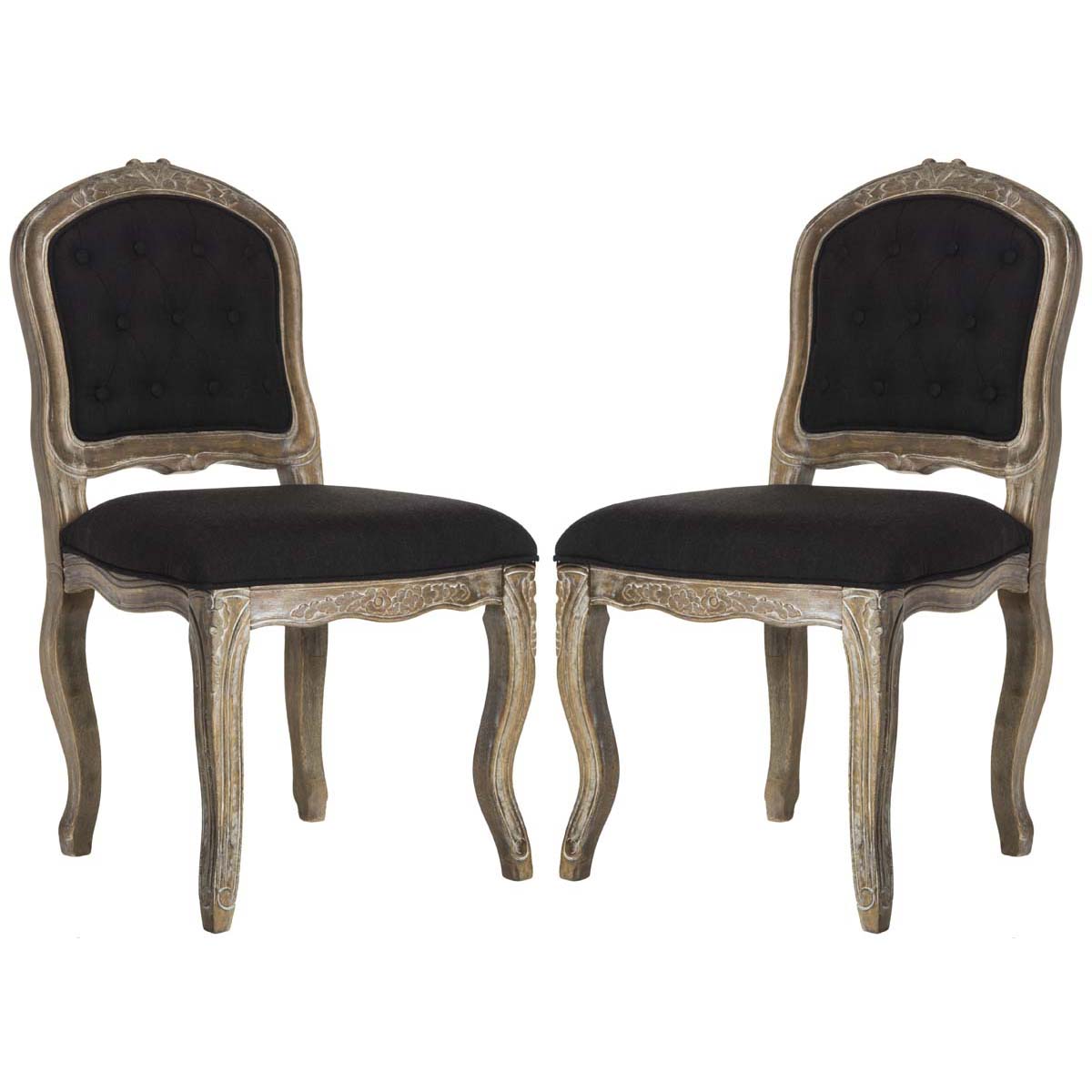 Safavieh Eloise 20''H French Leg Dining Chair-Black Linen/Rustic Oak (Set of 2)