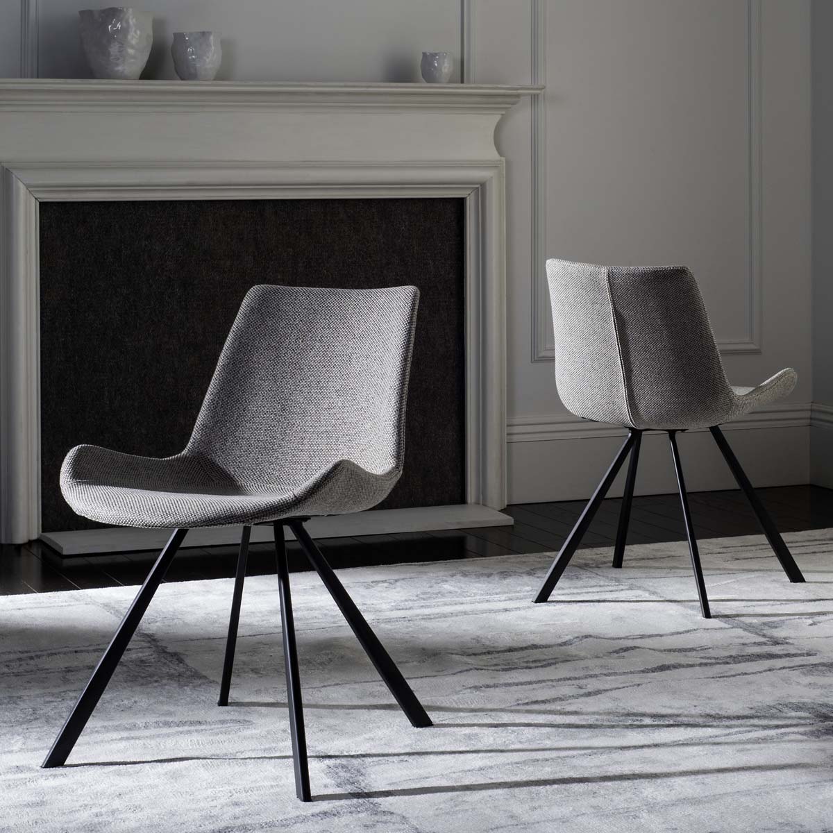 Make a retro chic statement with this Terra Dining Chair. Terra's light grey upholstery highlights its Mid Century silhouette, lending modern sculptural style to any dining room or living room. Sold in sets of two.